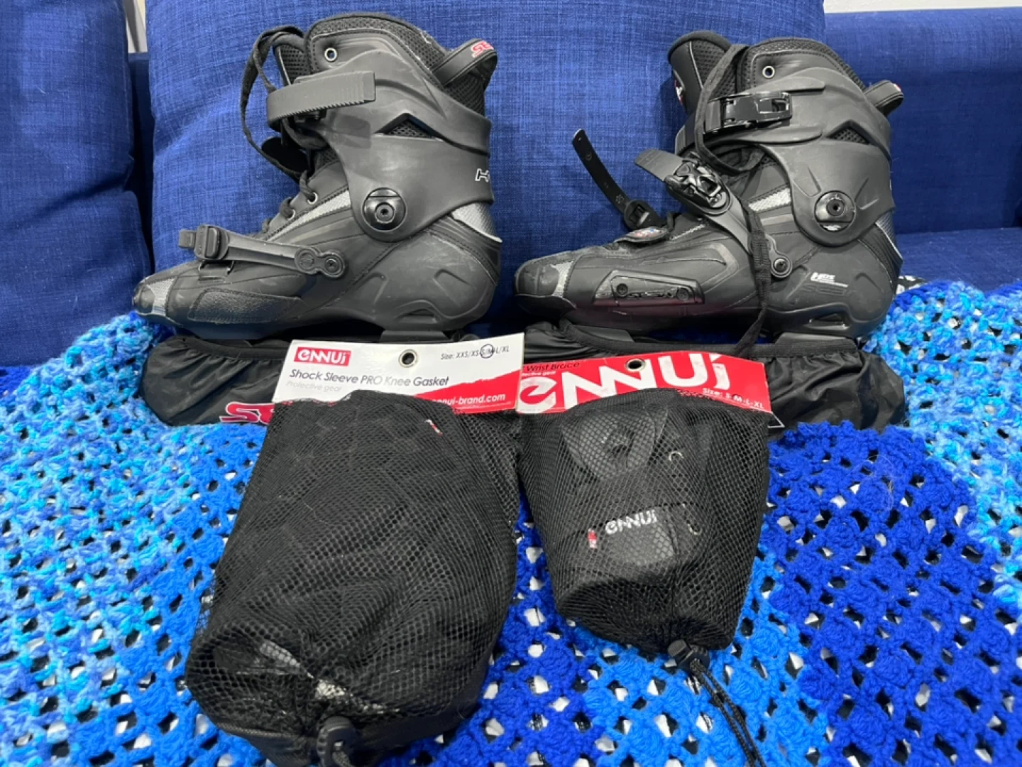 Selling a pair of Seba High Light inline skates in great condition! These skates are black and come with protectors (size S-M-L-XL). They're perfect for anyone looking to enjoy some outdoor skating. The wheels are 80mm. Ready for a new owner! Also comes with knee pads and wrist guards.