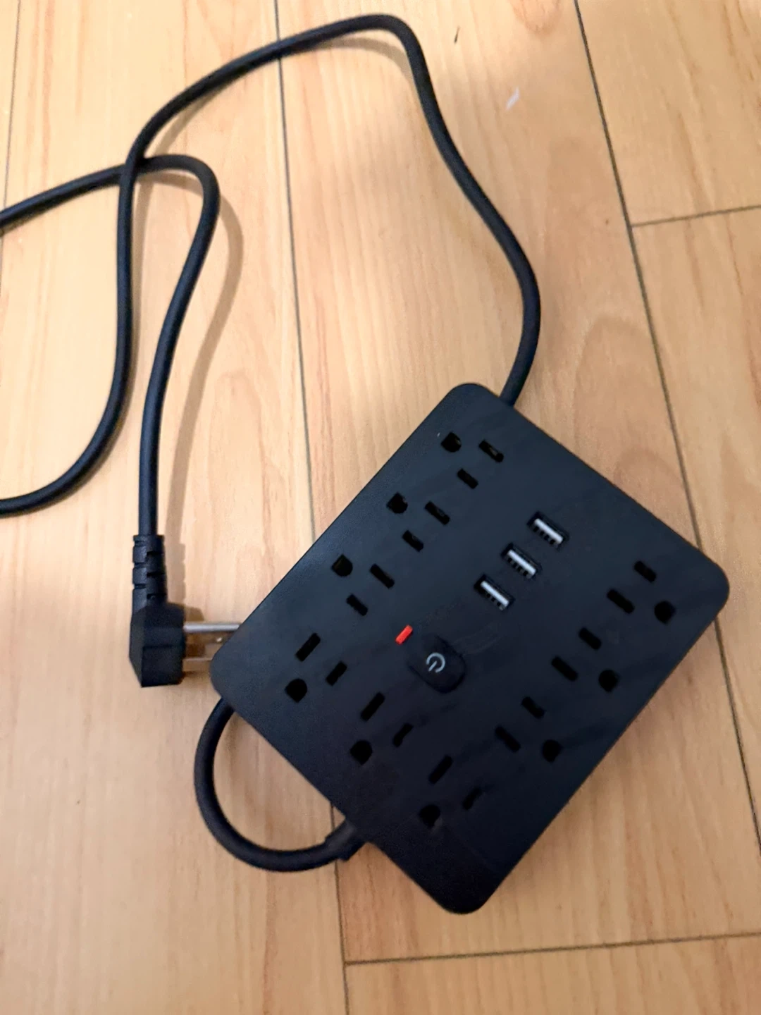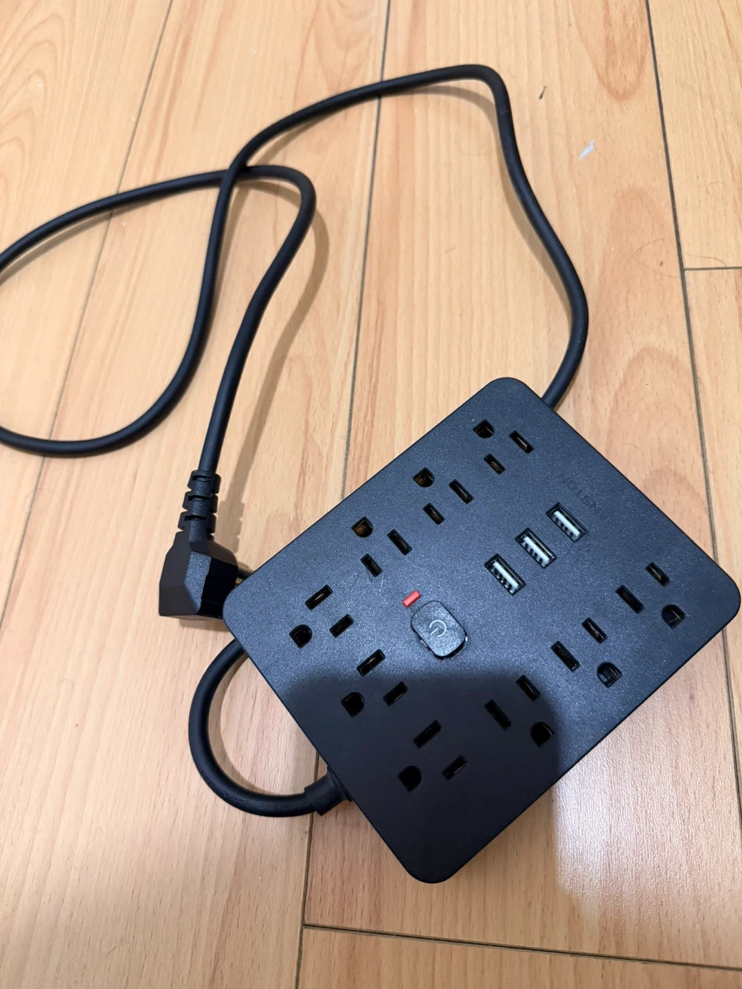 Selling a handy black power strip! It has multiple outlets and USB ports, perfect for keeping all your devices charged and organized. It's in great condition and ready to use!