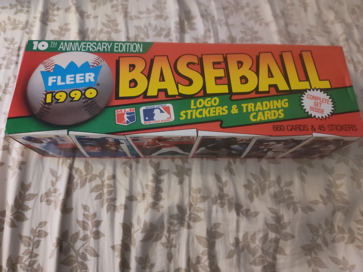 Selling a complete set of Fleer 1990 Baseball cards, 10th Anniversary Edition! It includes logo stickers and trading cards. There are 660 cards and 45 stickers in the set. A great addition for any baseball card collector!