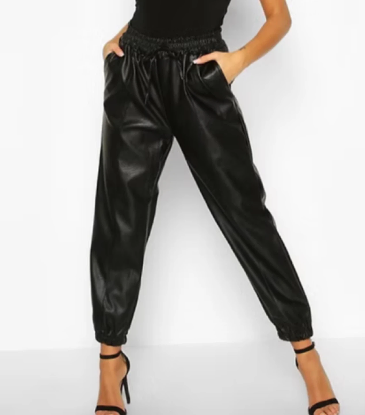Black Faux Leather Joggers