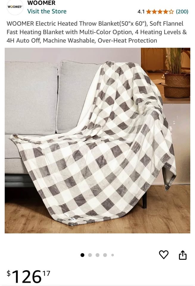 🛌WOOMER Electric Heated Throw Blanket(50"x 60")