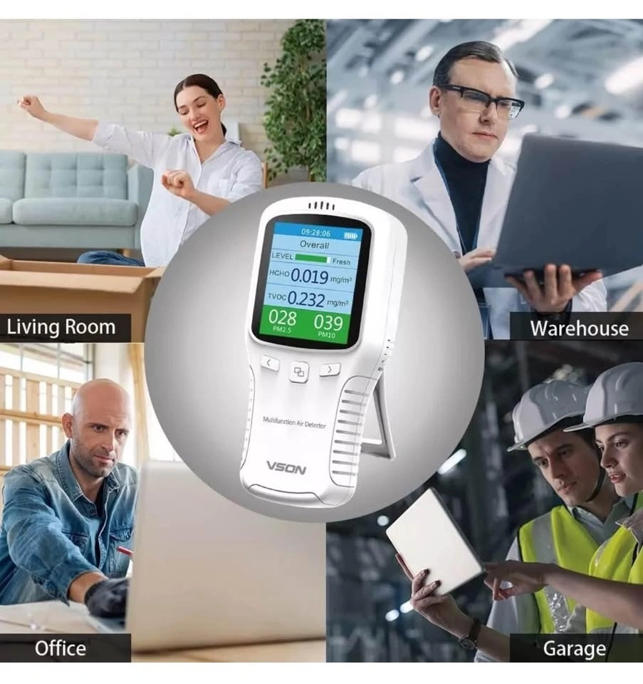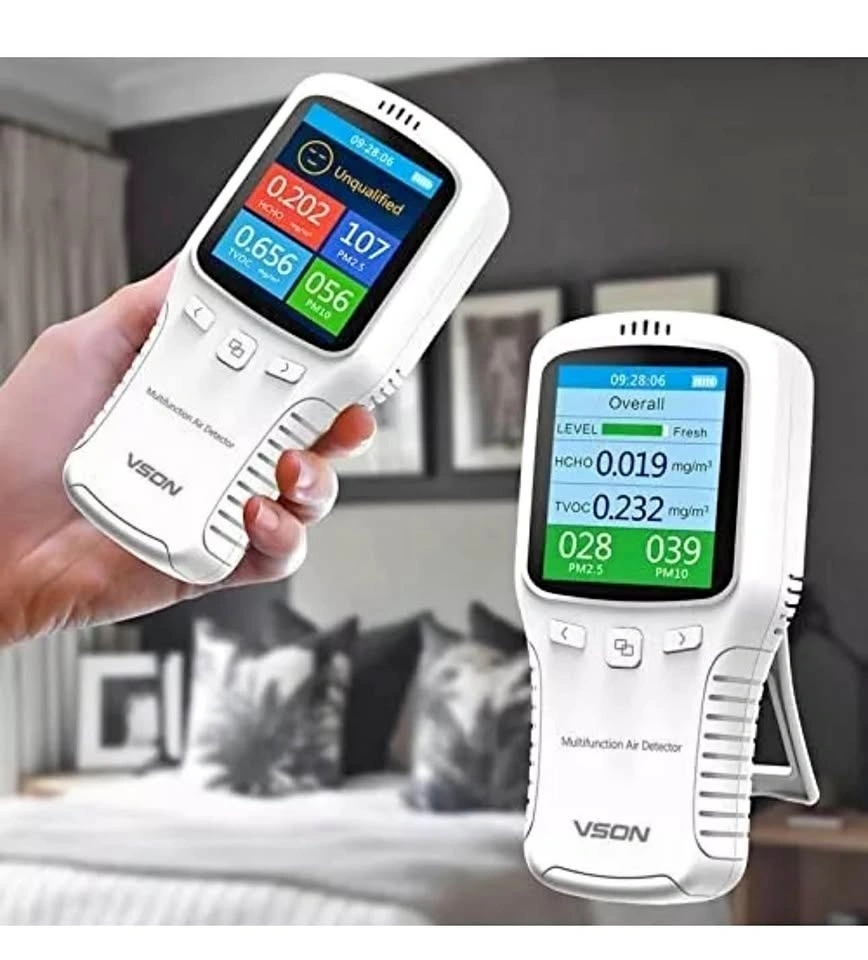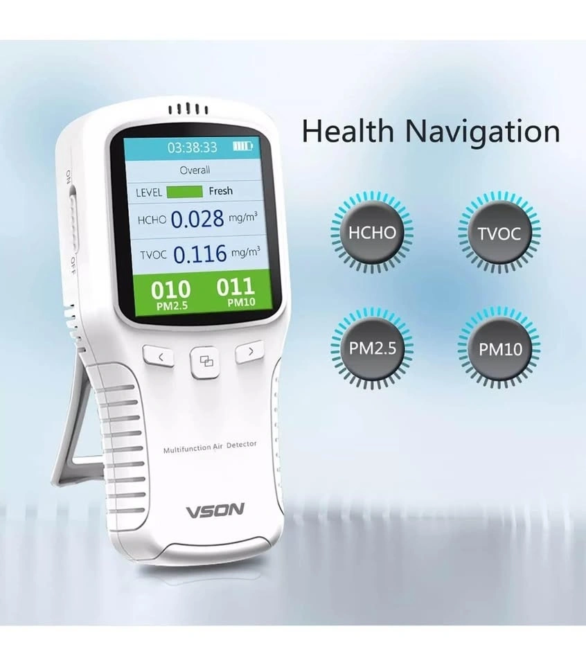 Air Quality Monitor,Formaldehyde Detector,Temperature & Humidity Meter, Sensor, Tester; Detects PM2.5/PM10/PM1.0/HCHO/TVOC in Real-Time.
