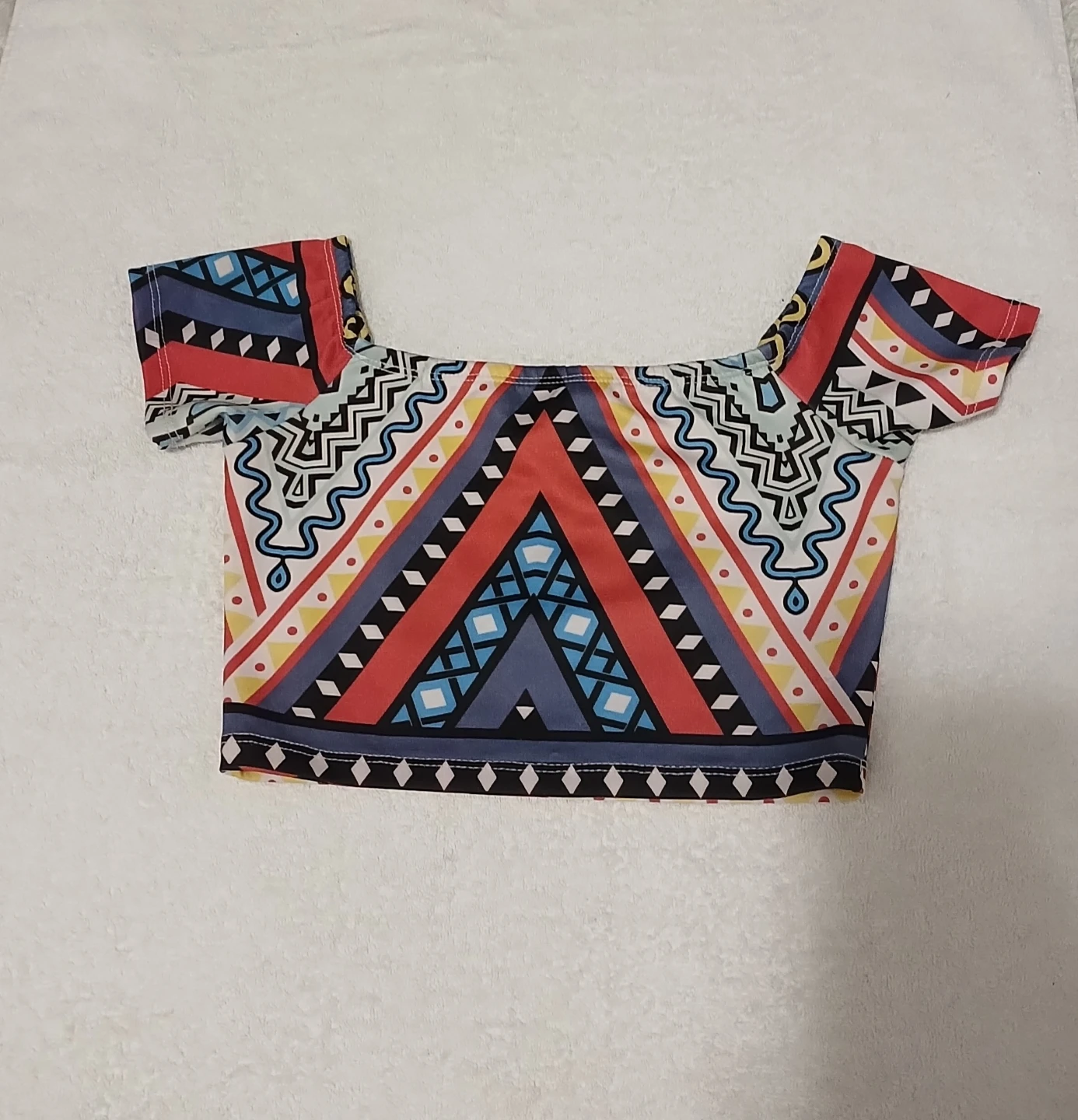 Cute patterned crop top, perfect for summer! It's in great condition and ready for a new wardrobe.