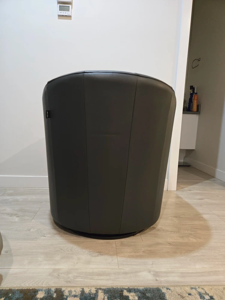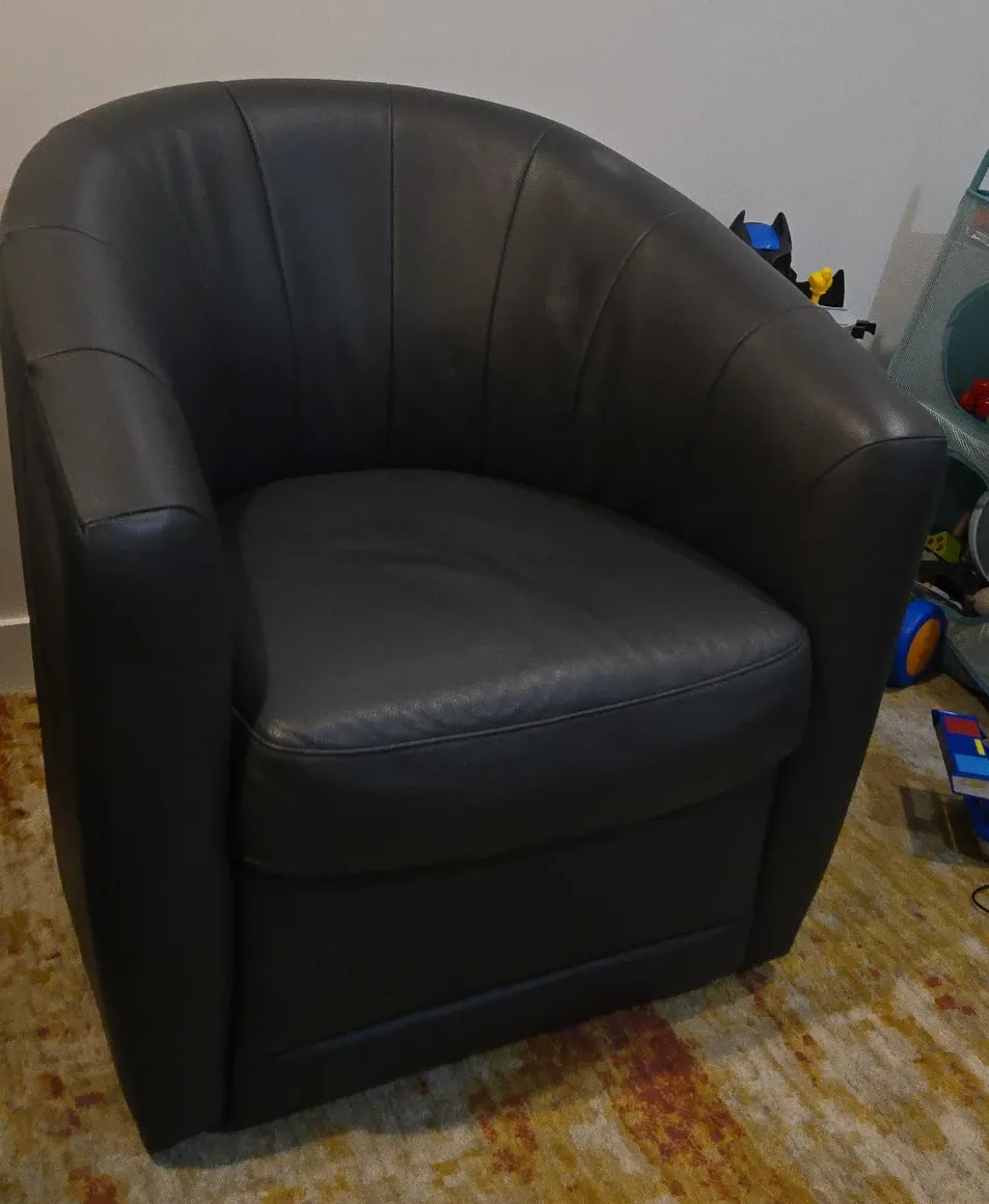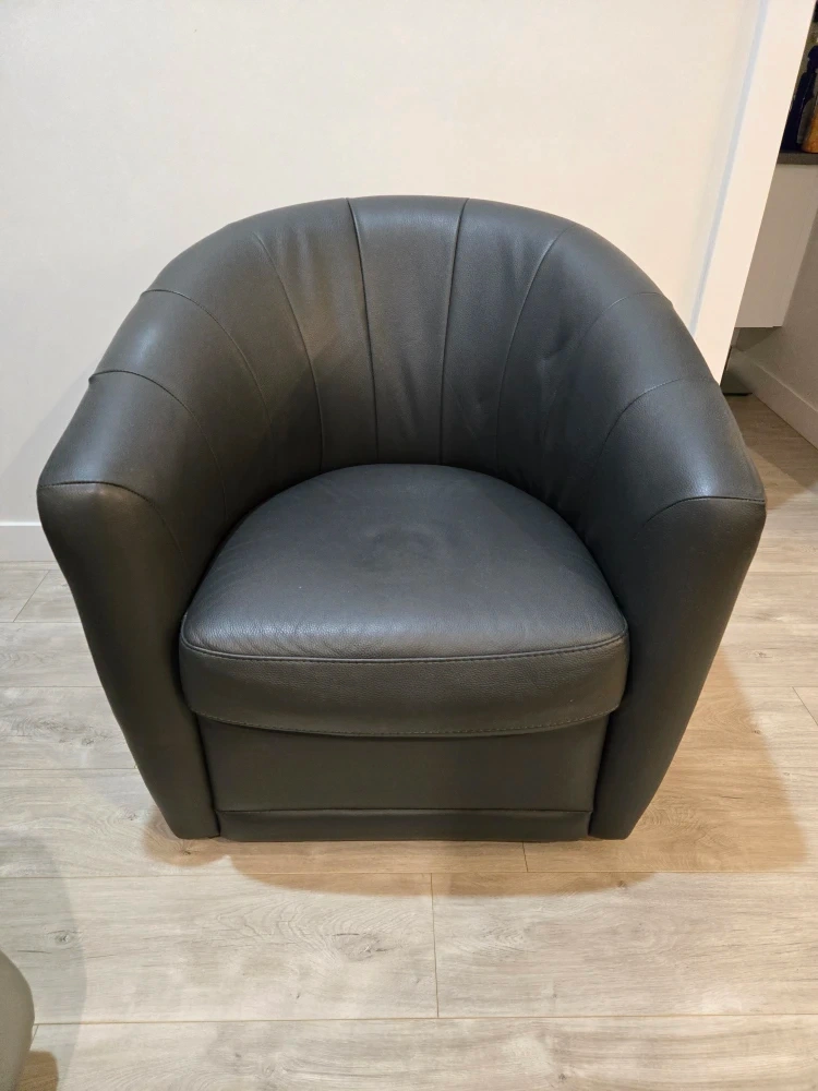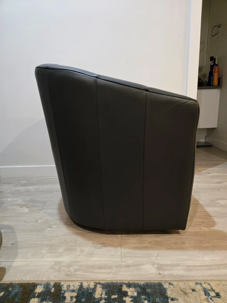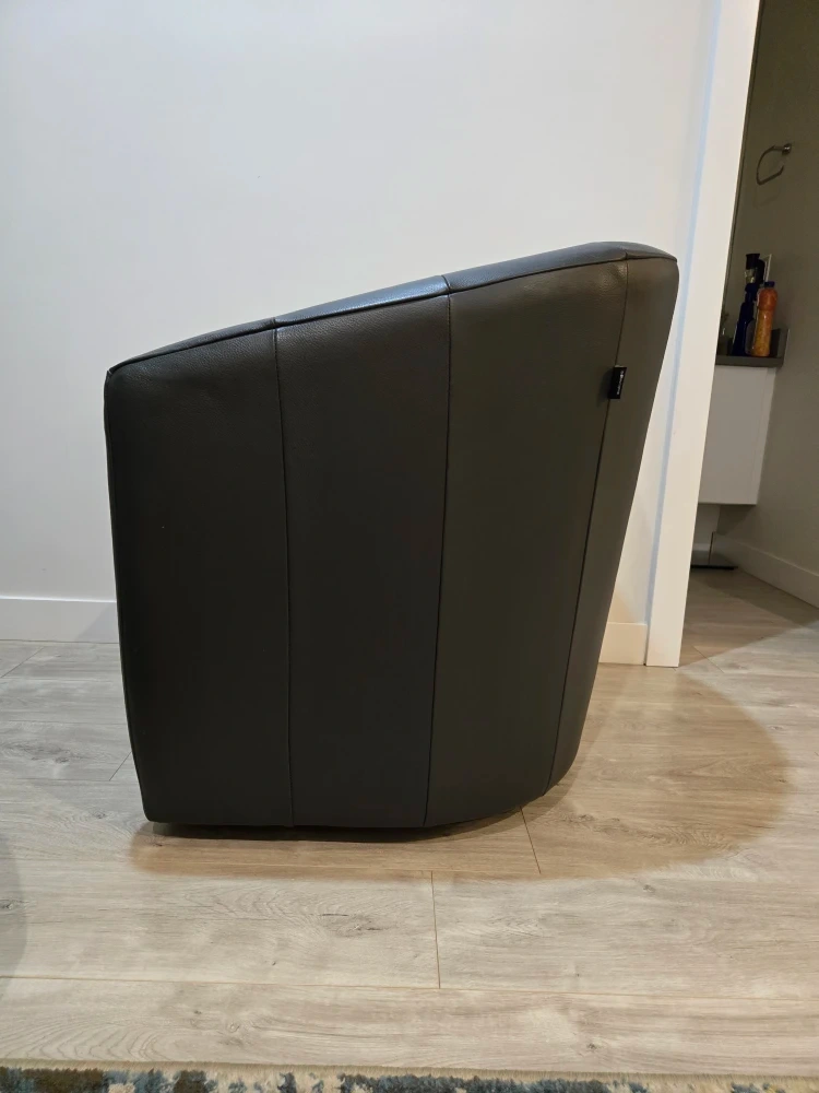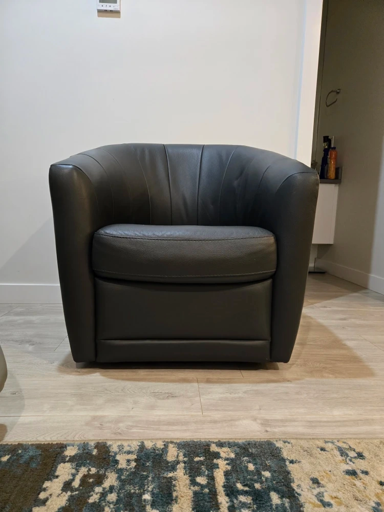 Selling a stylish barrel chair by Natuzzi Group! It's a lovely grey leather and would be a great addition to any living room or den