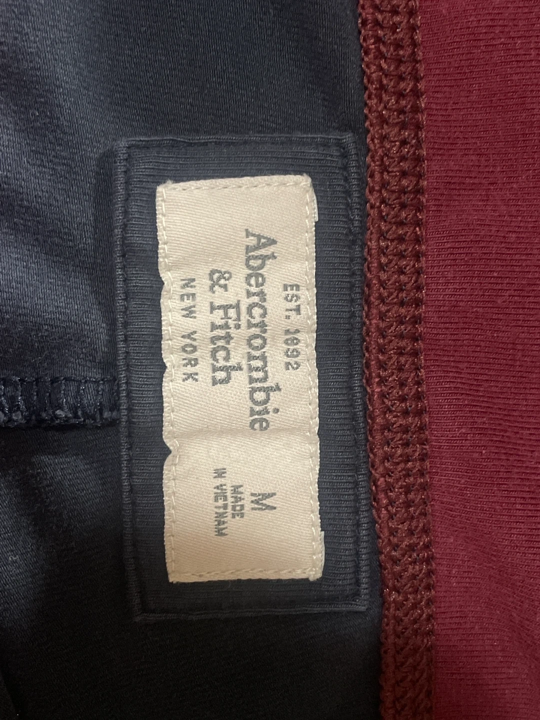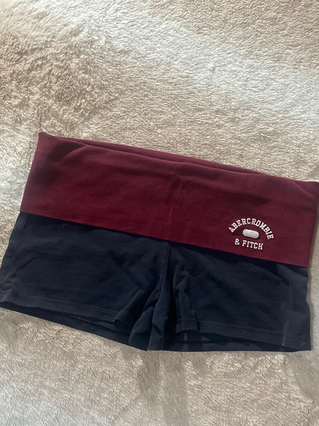Selling a pair of vintage fold-over Abercrombie & Fitch shorts in size medium. The shorts are a stylish combination of burgundy and navy blue. Perfect for casual wear or workouts!