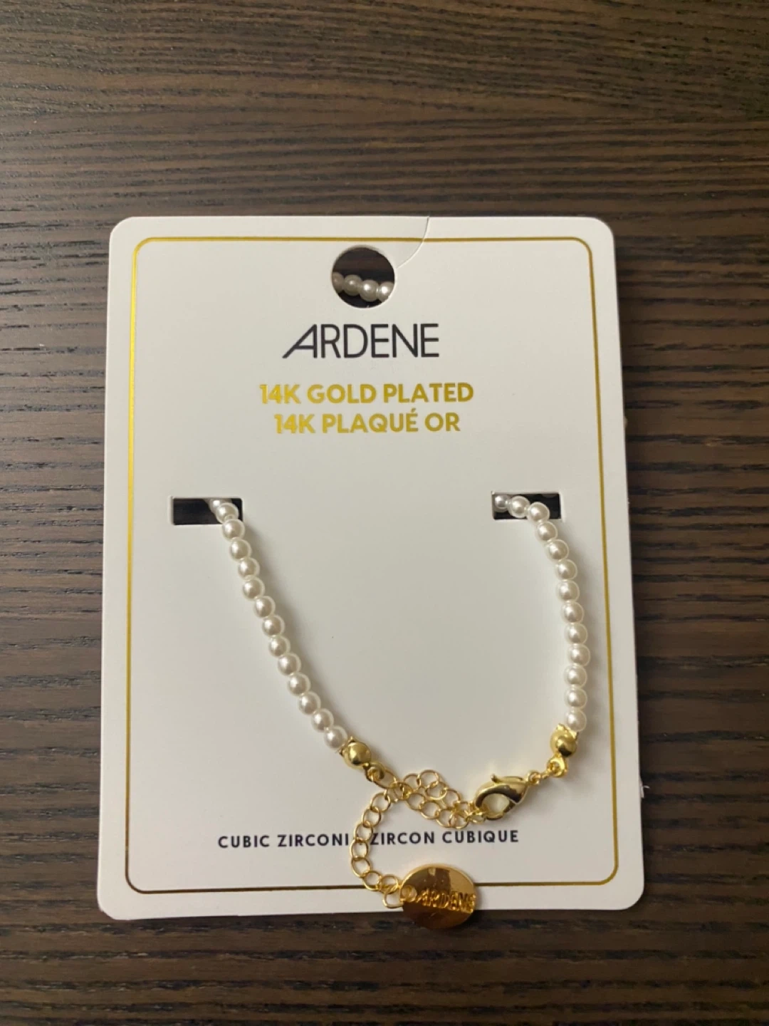Buy & SellNew Ardene Pearl BraceletNew Ardene Pearl Bracelet$5Selling a brand new Ardene pearl bracelet! It's 14K gold plated with cubic zirconia detailing. The original price tag shows $11.90ConditionNewBrandArdeneWHERE TO MEETRabba Fine FoodsView MapSELLERverifiedRhoConfederation Pkwy43034 reviews0 chats·0 favorites·5 viewsSEND CHAT TO SELLERHi Rho! I’m interested in your listing.Hi Rho! I’m interested in your listing.Get the Karrot app to chatSign In to chat