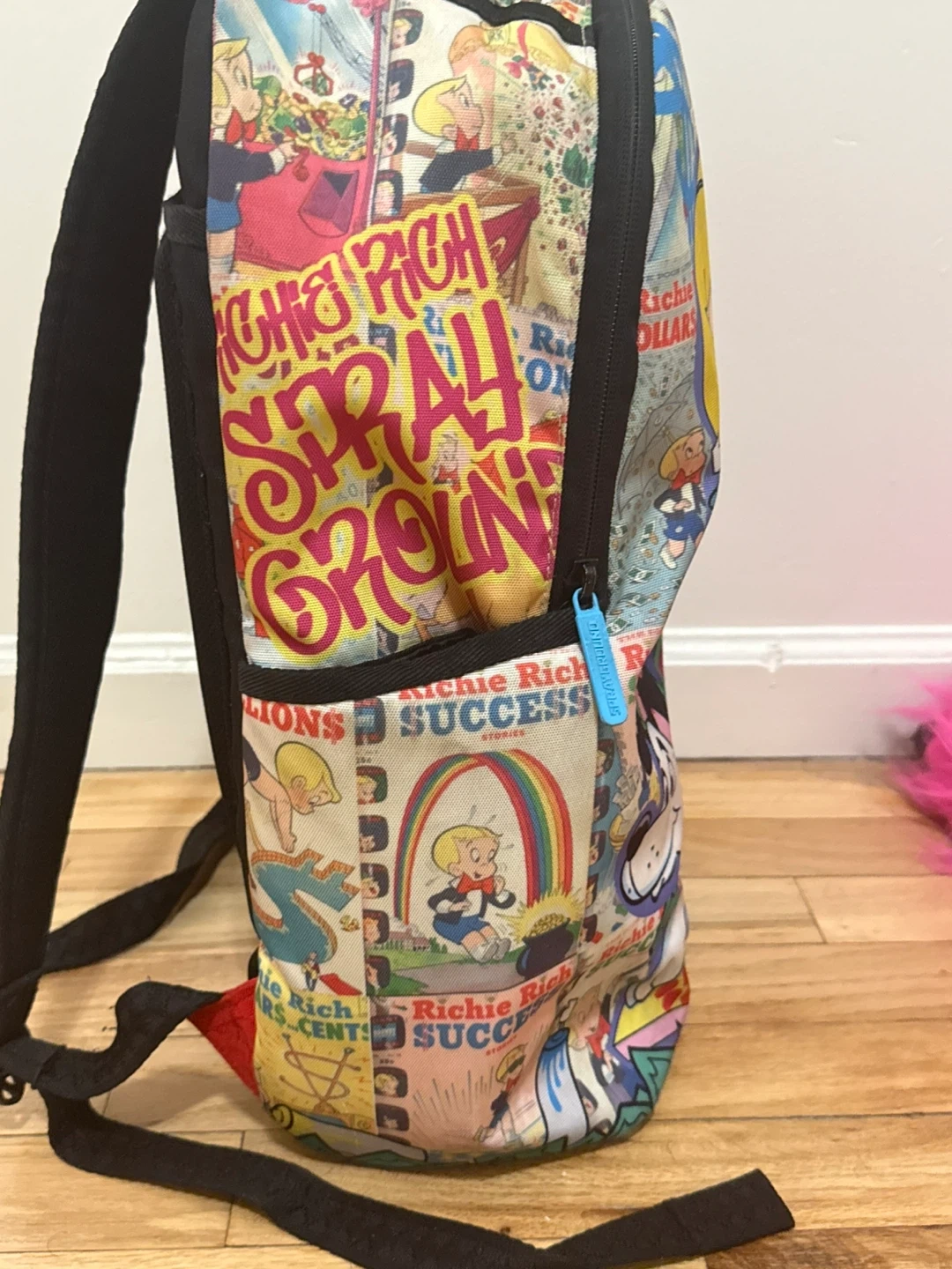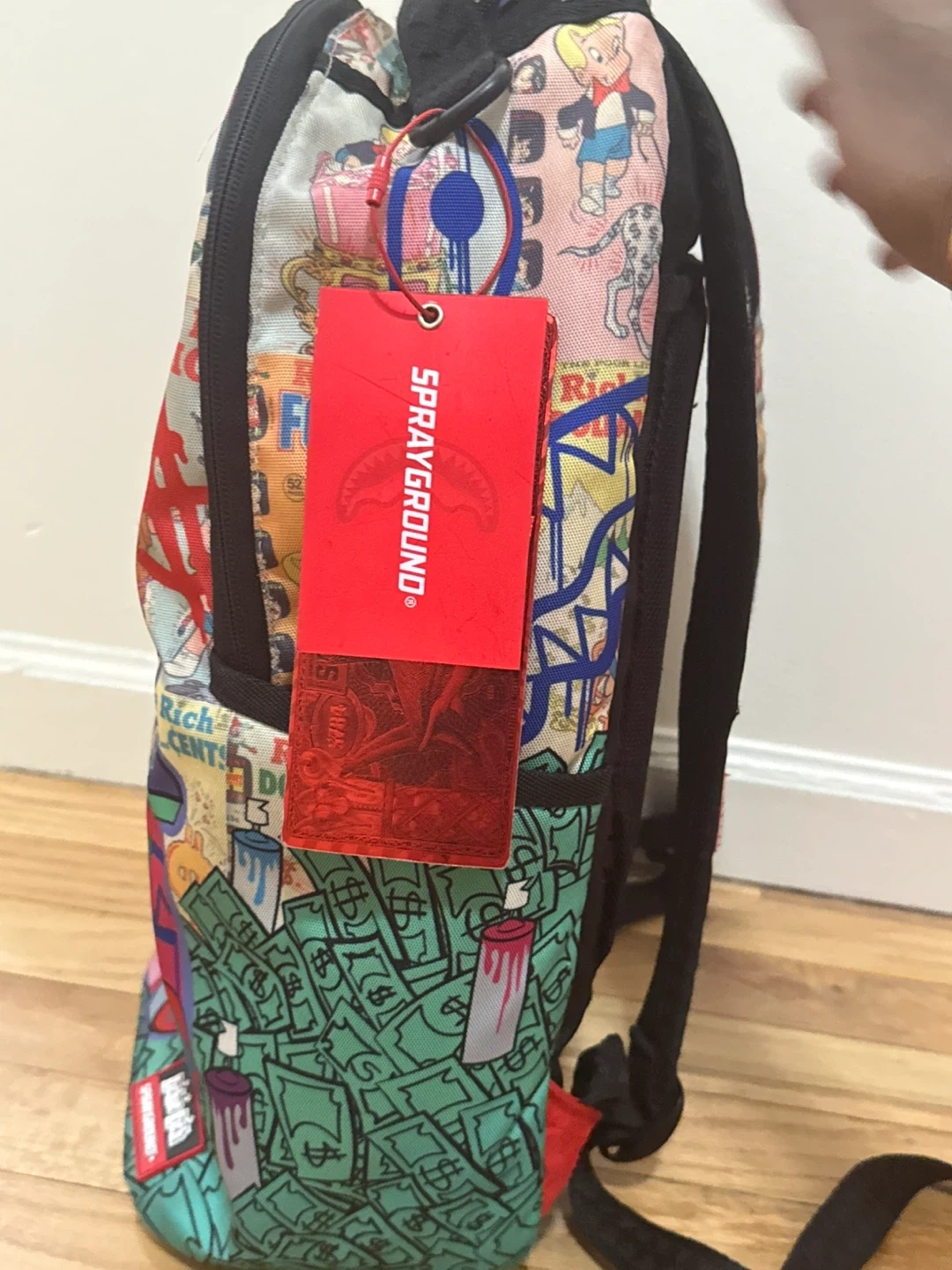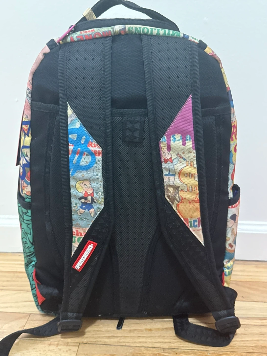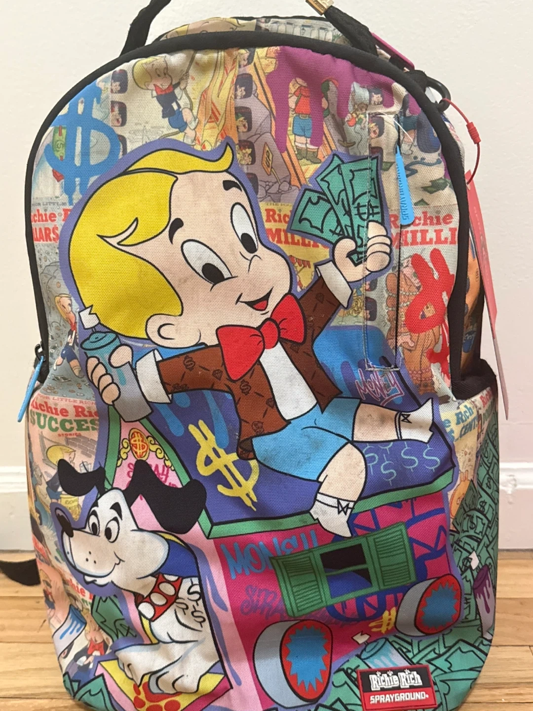 Here's a fun and unique Sprayground backpack featuring Richie Rich! It's in great shape and ready for a new adventure. The backpack has a distinctive design with vibrant colors and graphics. Perfect for anyone who loves Richie Rich or wants a standout backpack