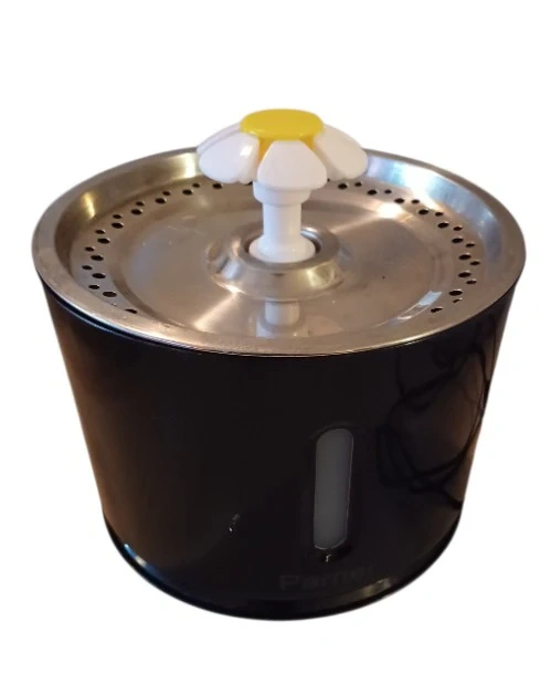 I'm selling a PetSafe Drinkwell pet fountain. It's a great way to keep your furry friend hydrated. The fountain has a flower design on top and a water level window on the side. It's in brand new condition and ready for a new home!