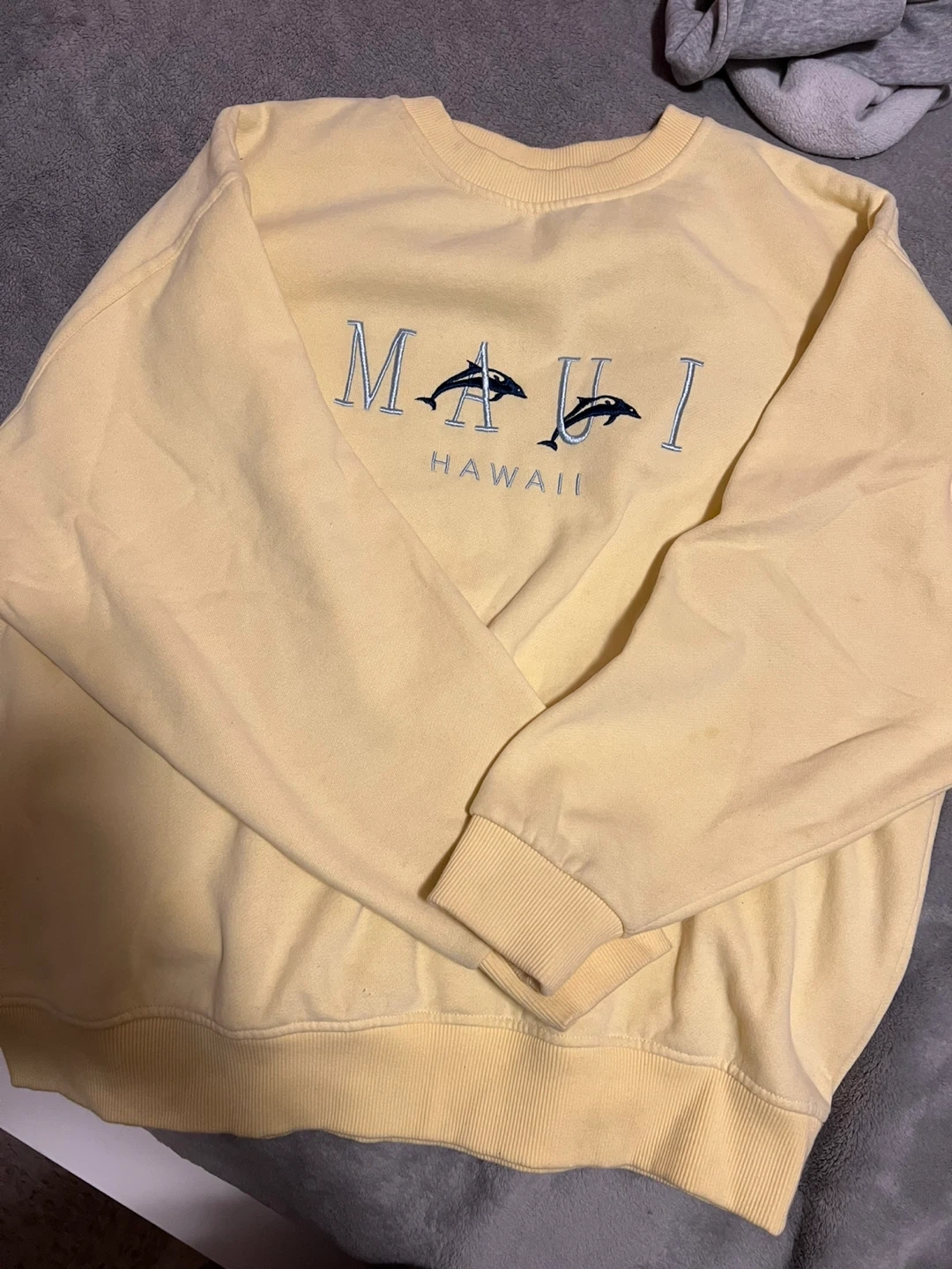 Selling a super cute Twik sweatshirt with a Maui Hawaii design! It's a lovely yellow colour and a size XS. Worn a couple of times.