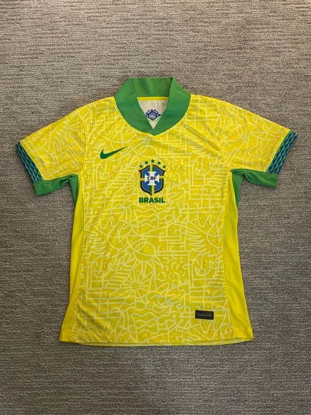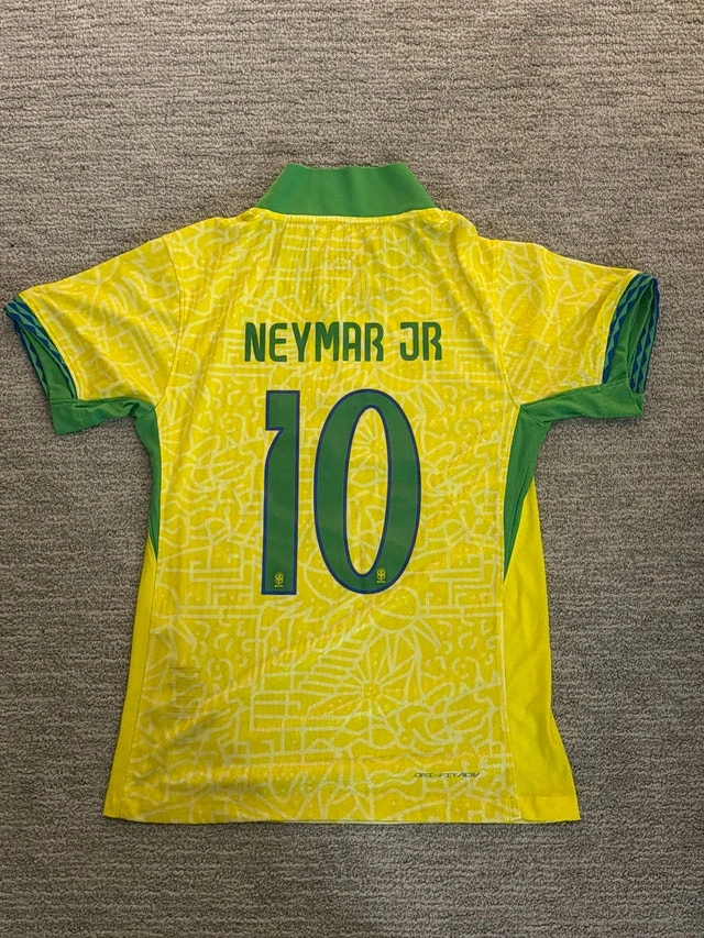 Up for grabs is a Brazil Neymar Jr Nike soccer jersey, perfect for showing your support or adding to your sports memorabilia collection! Being a used item, it has been previously worn, but it's still in great shape and ready for its next match or casual wear. The jersey features Neymar Jr's name and number, making it a must-have for fans. Key features include: - Official Brazil team design - Neymar Jr's name and number - Nike branded - Comfortable fit for various activities If you're reading this, yes, the jersey is still available!