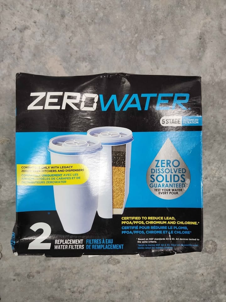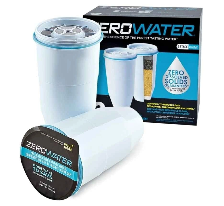 ZeroWater Official Replacement Filter - 5-Stage 0 TDS Filter Replacement - System IAPMO Certified to Reduce Lead, Chromium, and PFOA/PFOS, 2-Pack