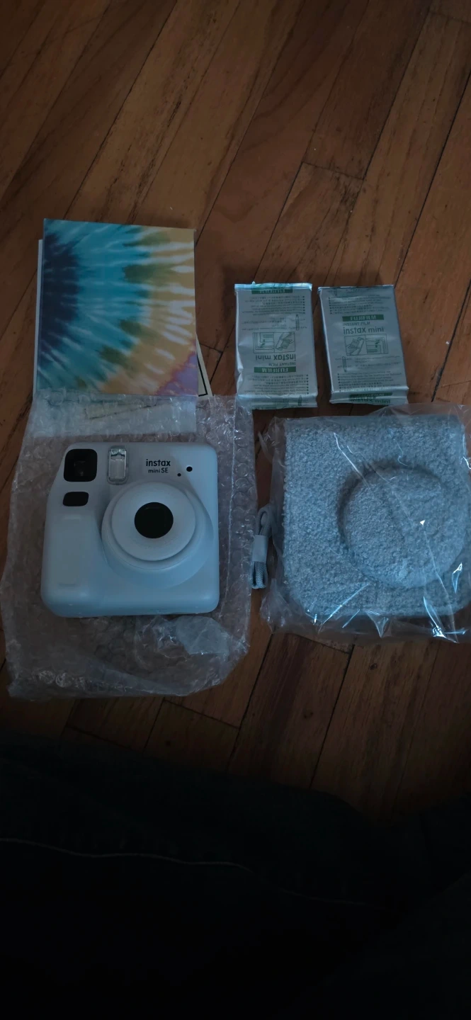 Selling a Fujifilm Instax mini SE instant camera! It comes with film, a case, and a tie-dye photo album. Everything is in great condition and ready for capturing memories
