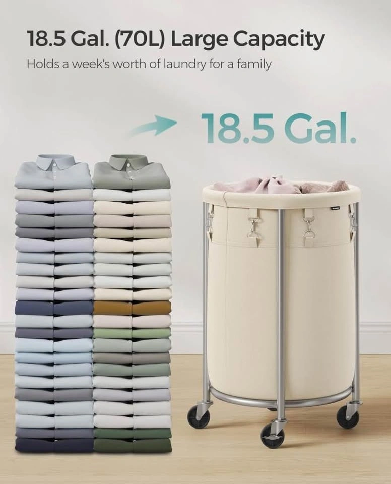Upgrade your laundry routine with the SONGMICS 18.5-Gallon Rolling Laundry Basket — stylish, sturdy, and easy to move.
