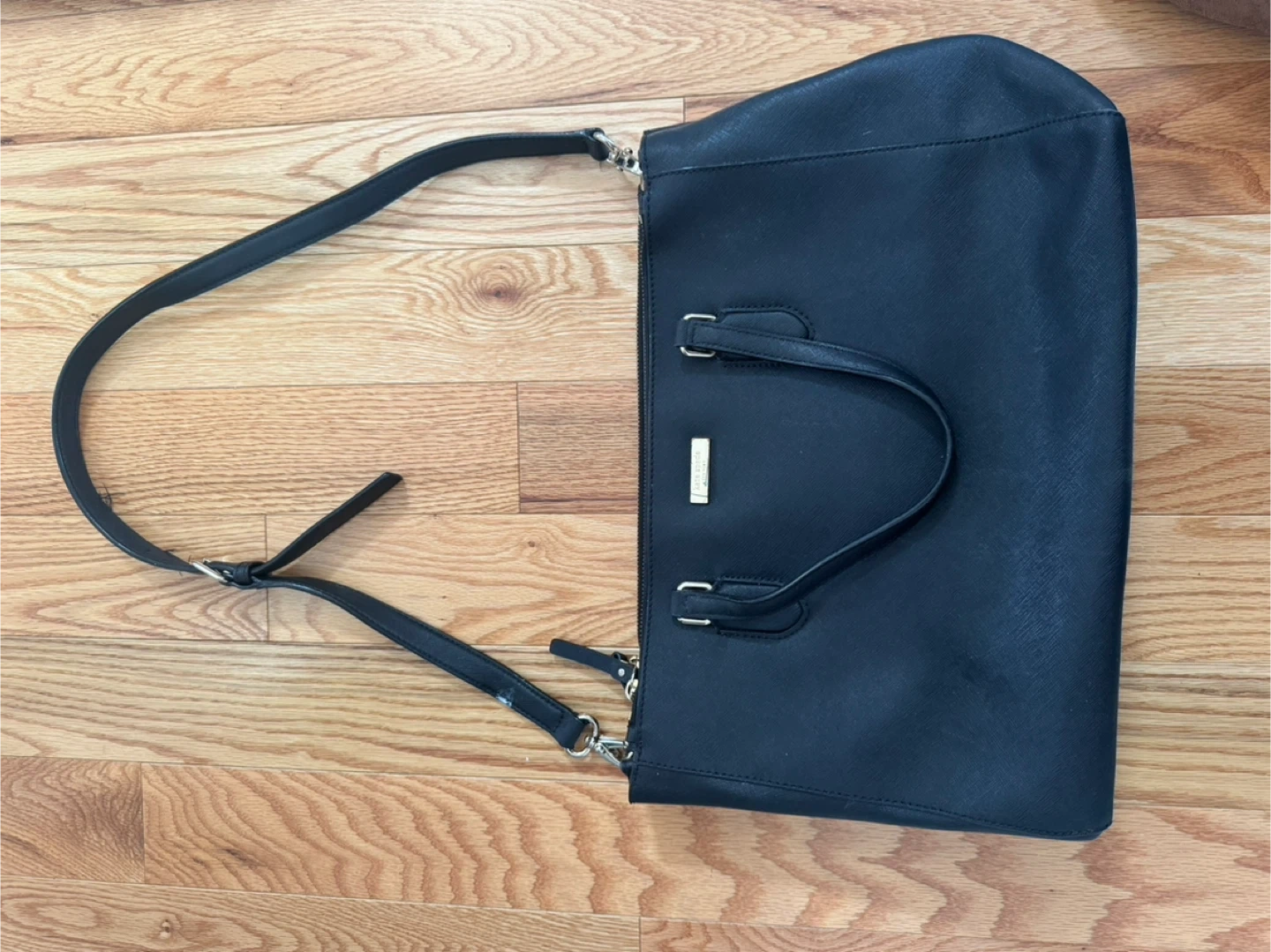 Selling a Kate Spade black tote bag. It's in good condition and perfect for everyday use. The bag has a sleek design and is made of durable material. It's a stylish and practical accessory.