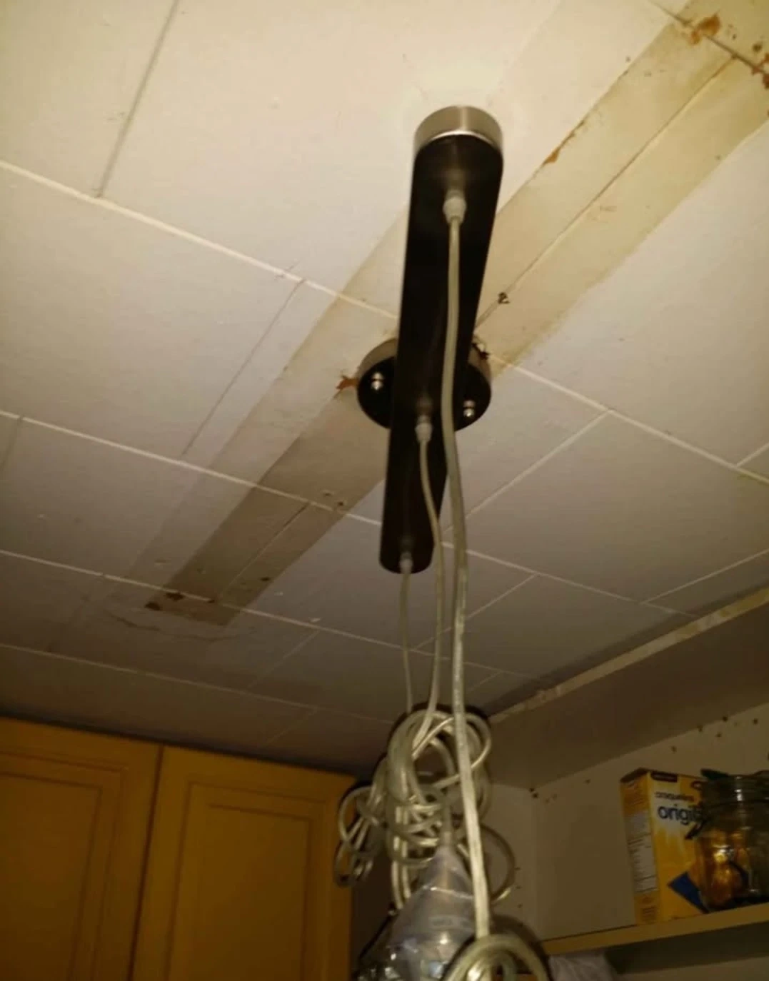 Selling a hanging pendant light fixture. It features a frosted glass shade and a metal canopy. Perfect for adding a touch of elegance to your kitchen or dining area! Broke one of the shades.