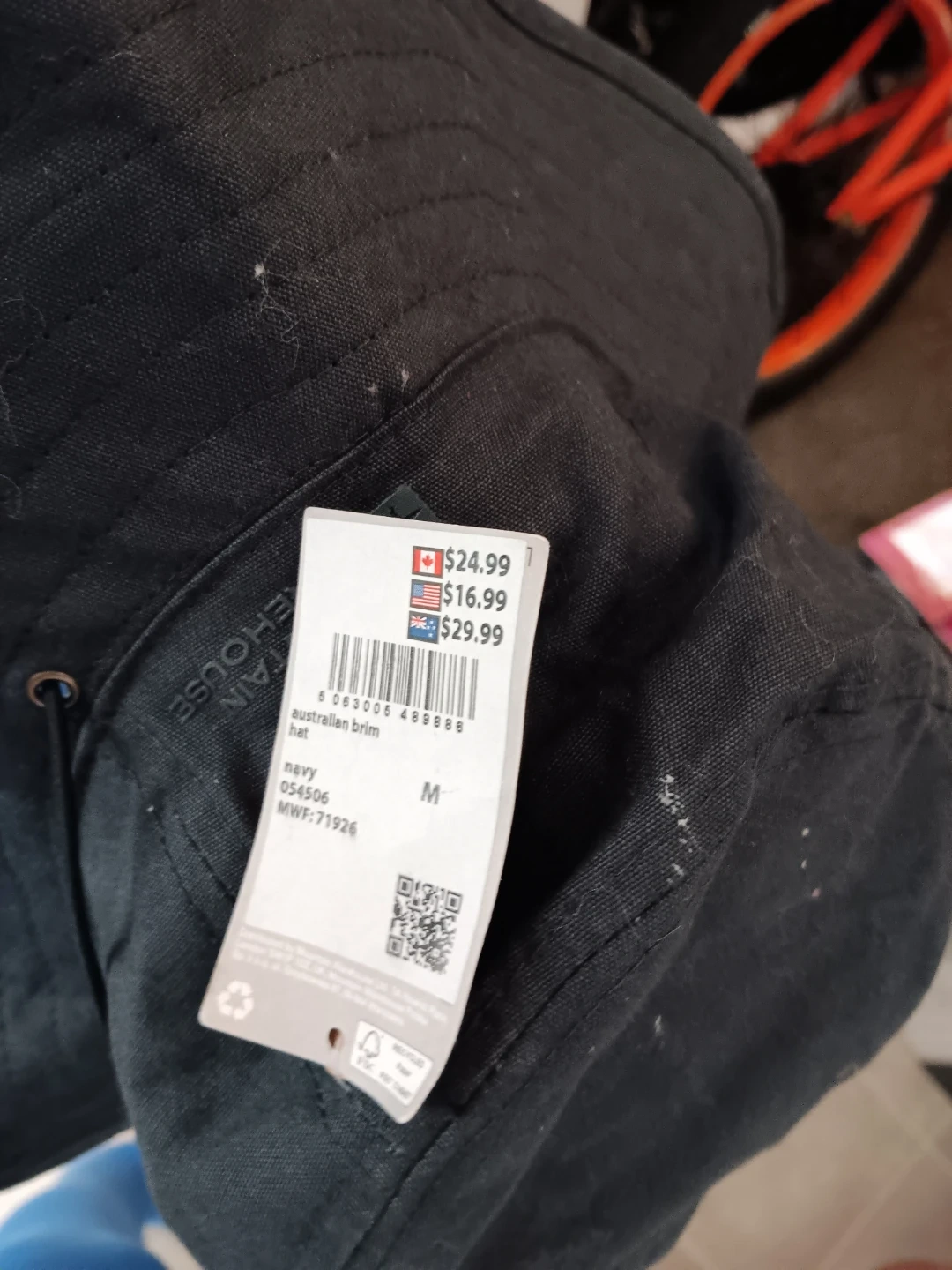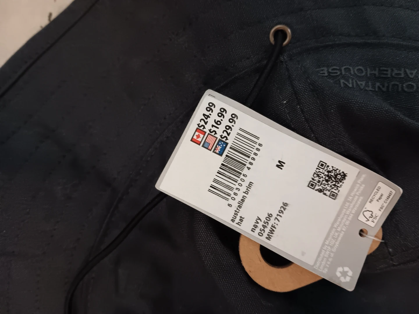 This is a Mountain Warehouse Australian brim hat in navy. It's a size M and still has the tags on it. Originally bought for $24.99