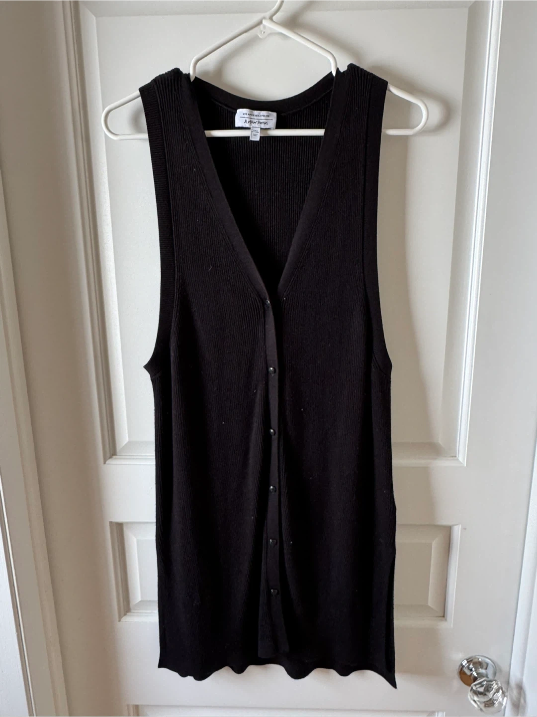 Selling a stylish black sleeveless cardigan from & Other Stories! It's a size medium and features a V-neck with button-up closure. Perfect for layering or wearing on its own.