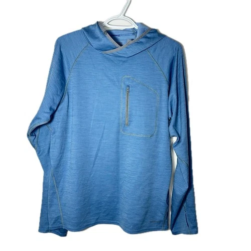 Wrap yourself in the comfort of Patagonia's organic cotton hoodie, a perfect blend of style and functionality for any casual outing or active day out. The lightweight fabric ensures ease of movement, while the hooded design and long sleeves provide warmth and versatility for cooler weather. With a solid blue colour, this pullover hoodie boasts a classic yet chic look, complemented by the brand's signature logo accent and practical pockets. Designed for women who appreciate the fusion of outdoor flair and everyday wear, this size small hoodie is suitable for a variety of occasions, from walking and driving to travel and leisure. The chest measures a roomy 20 inches, ensuring a regular fit that's not too tight or too loose. Machine washable and easy to care for, this hoodie is an essential addition to your wardrobe for a relaxed and stylish season.