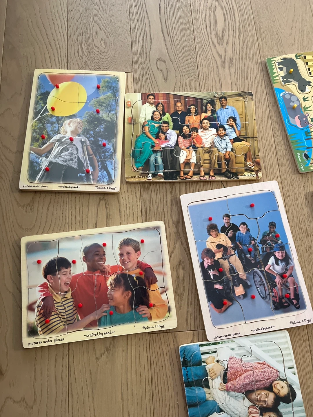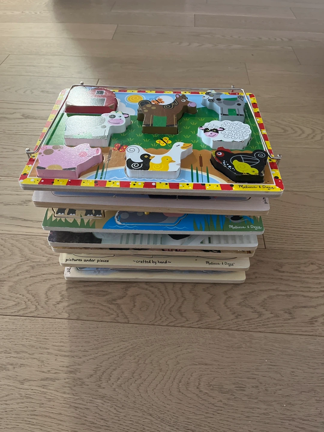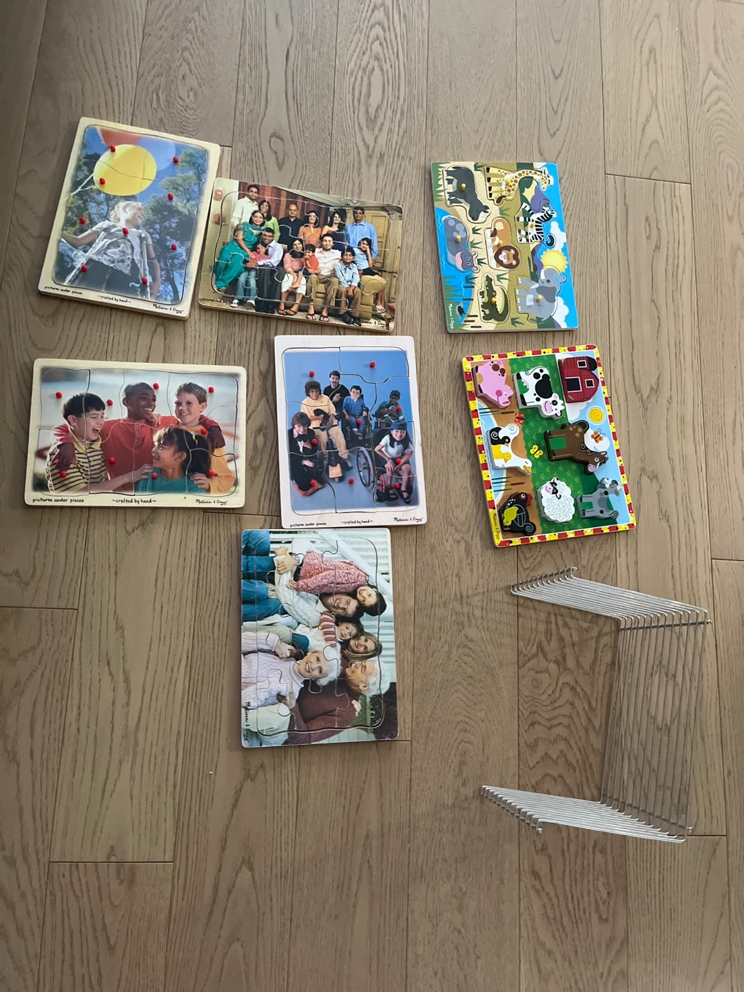 Selling a set of 7 Melissa & Doug wooden puzzles. They are in good condition and perfect for little ones!