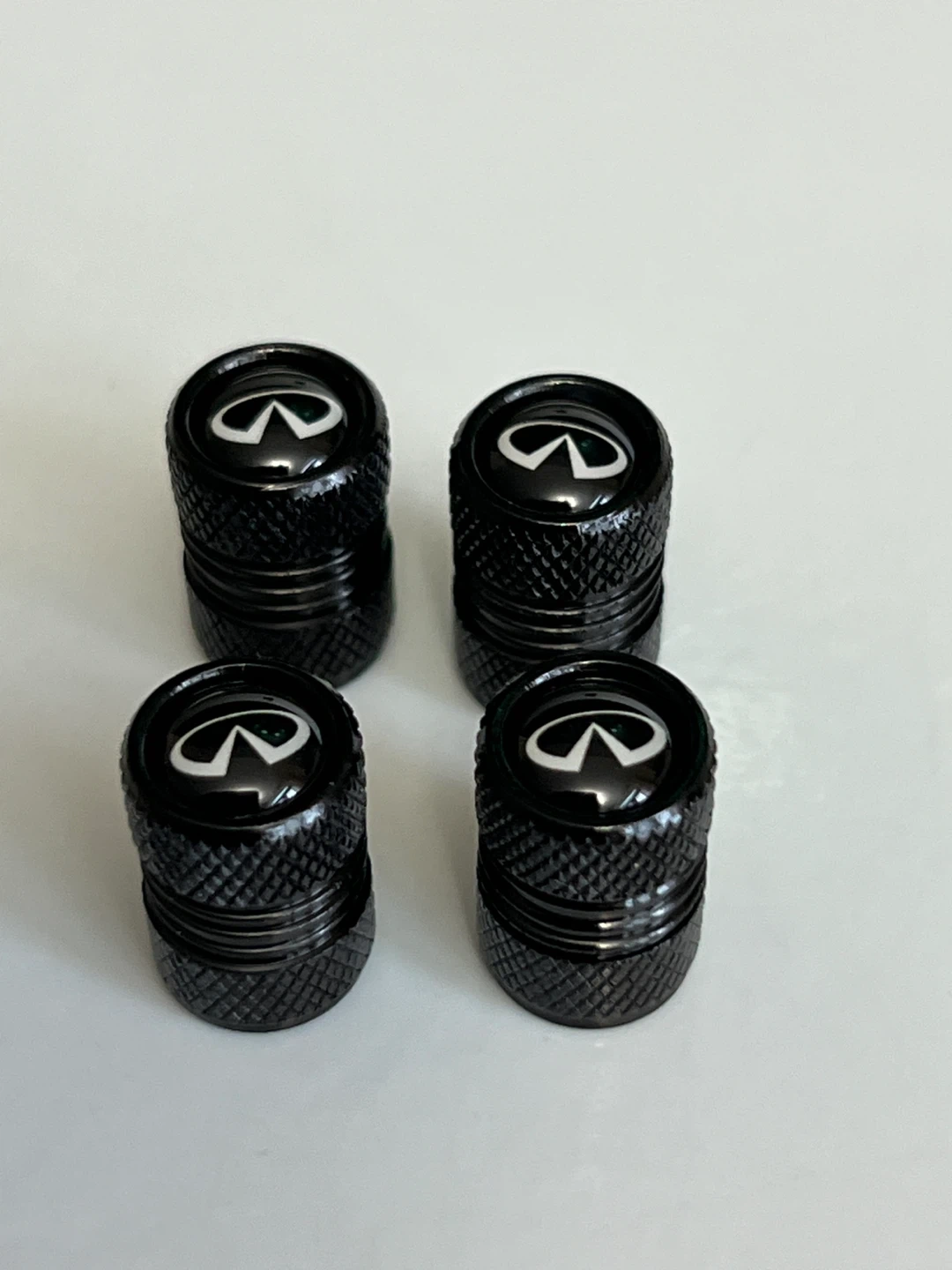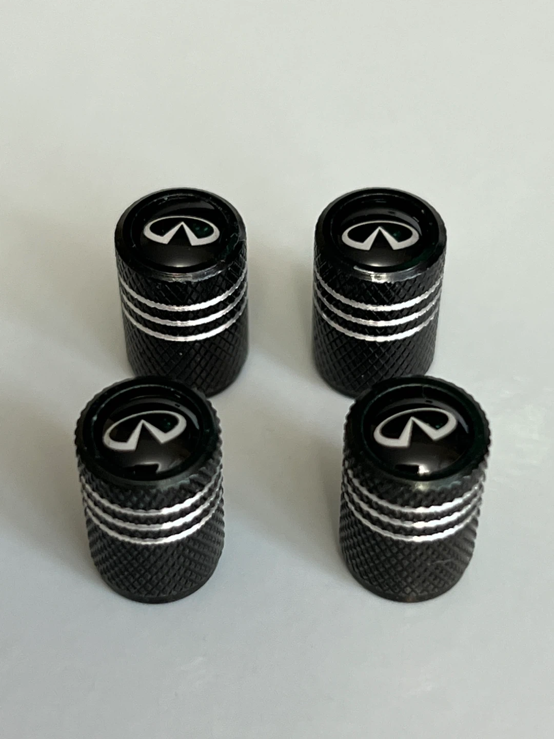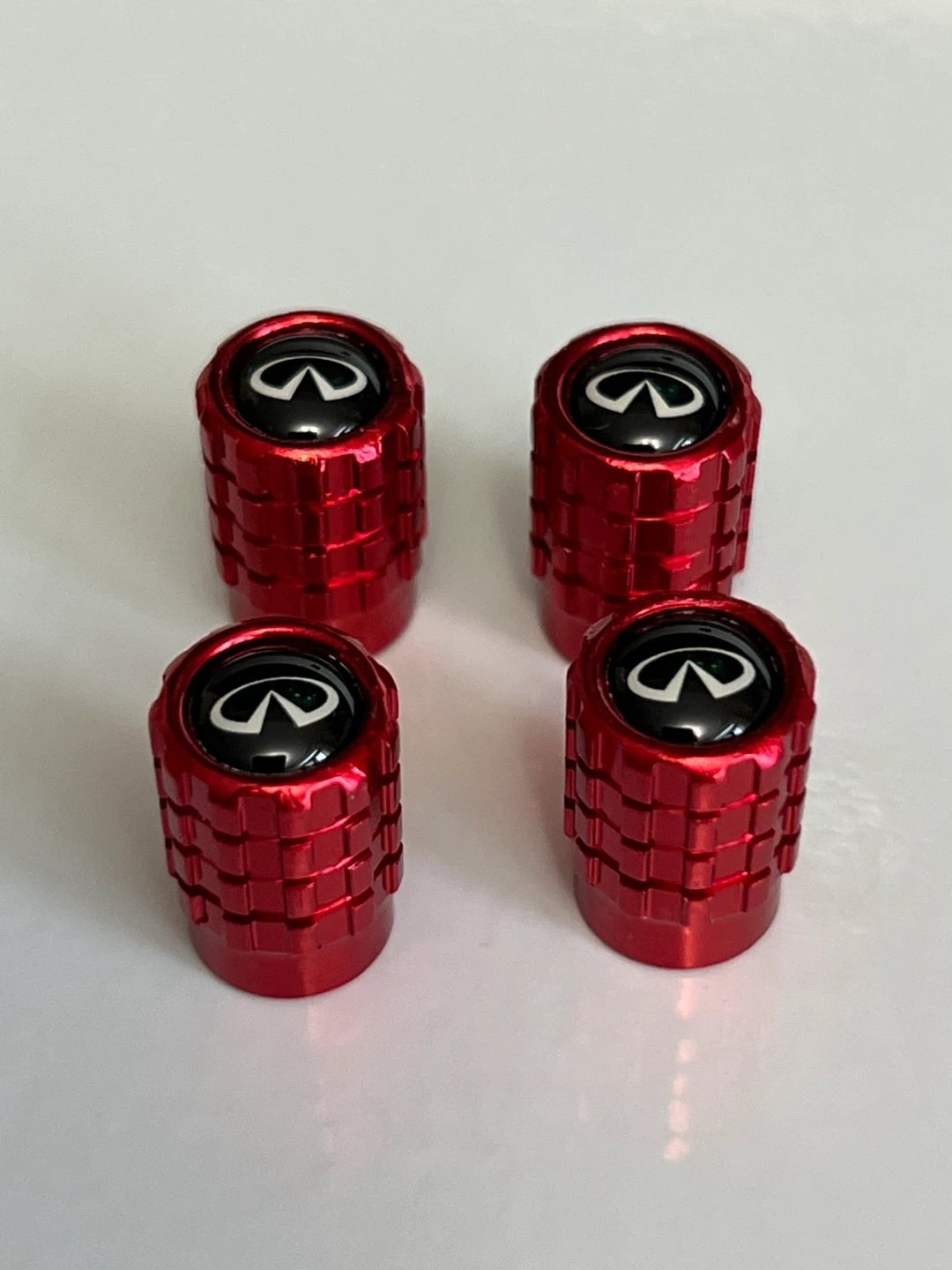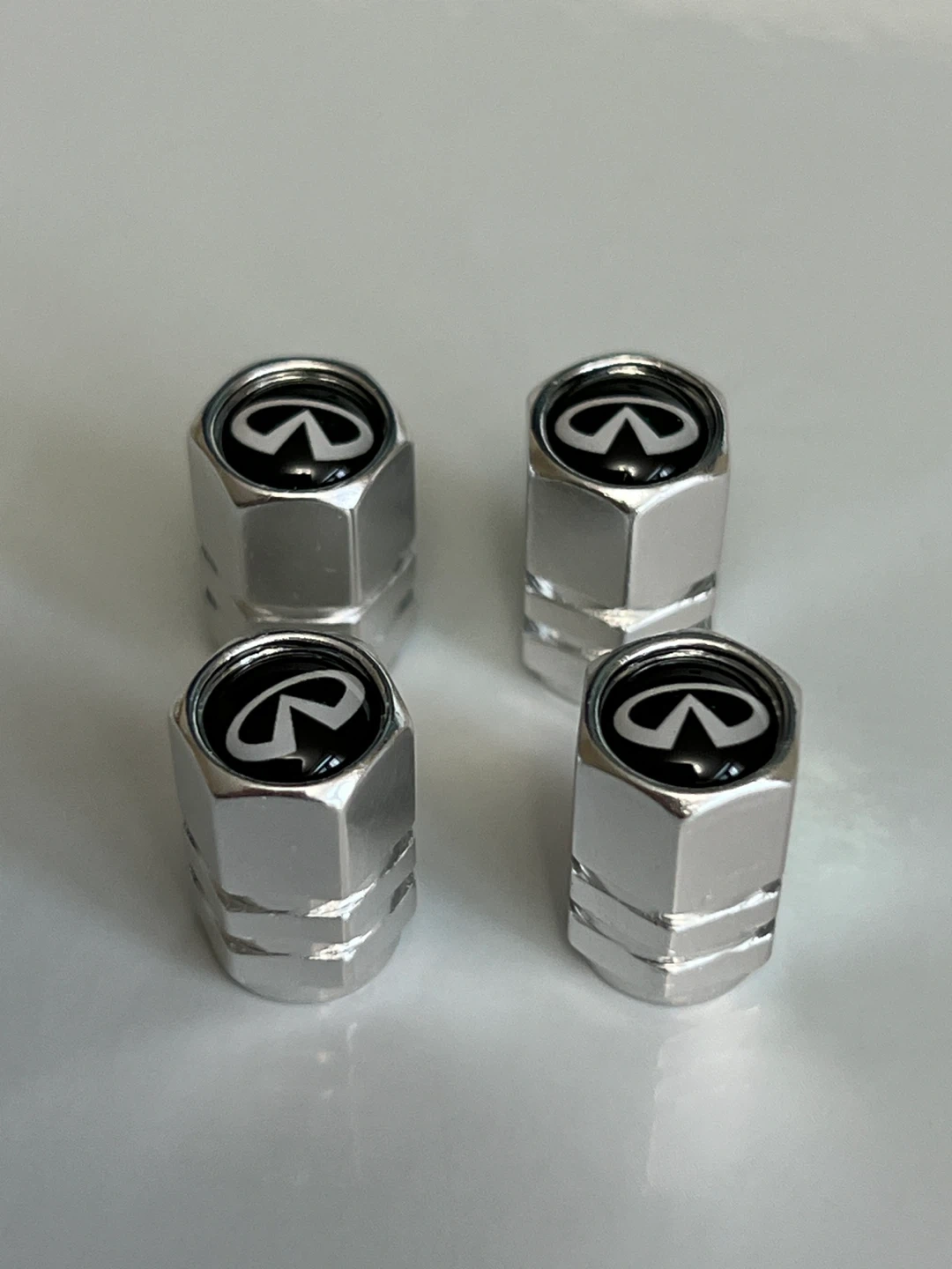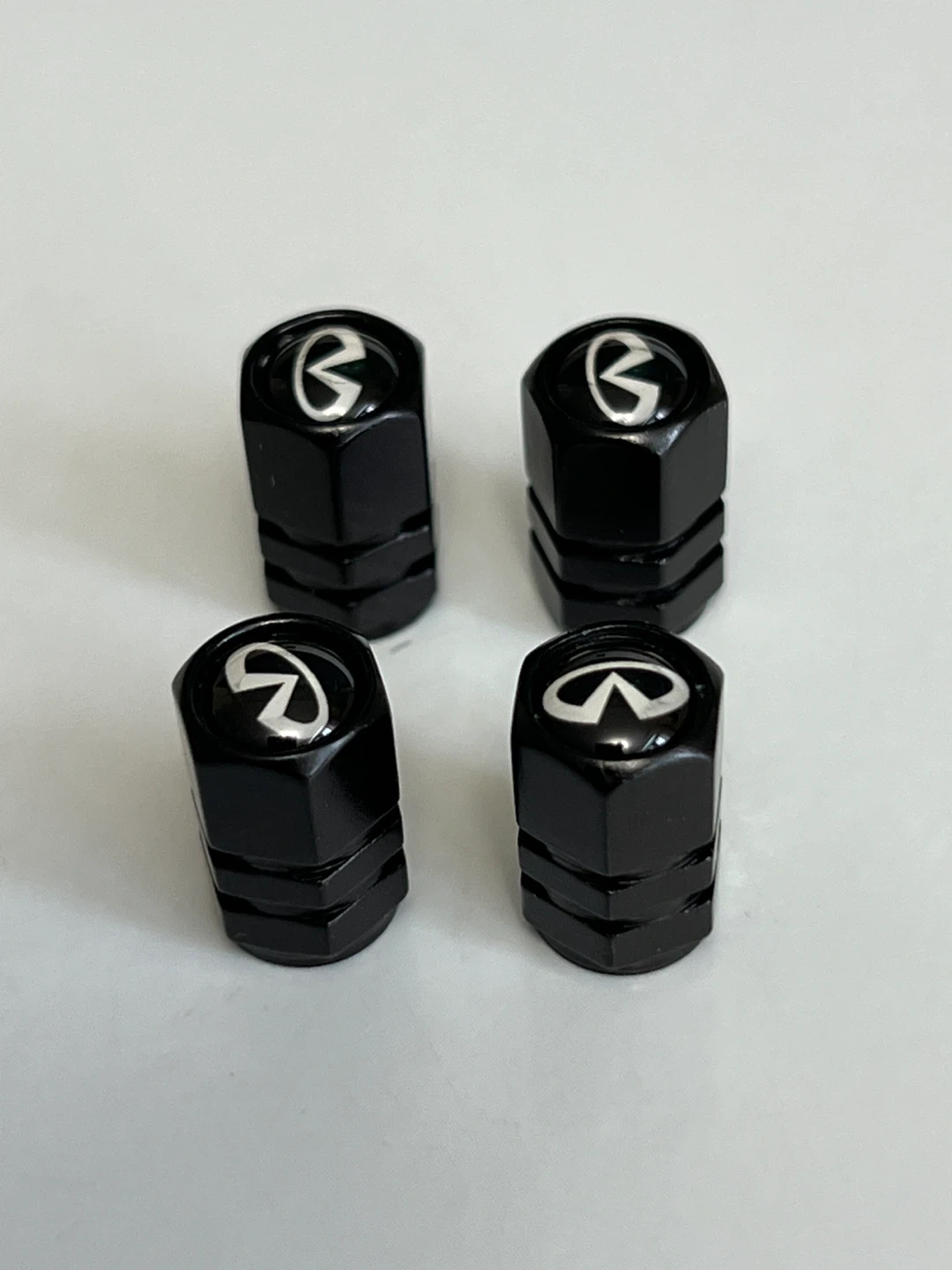 Here's a set of four Infiniti tire valve stem caps. They're brand new and ready to add a little style to your ride!