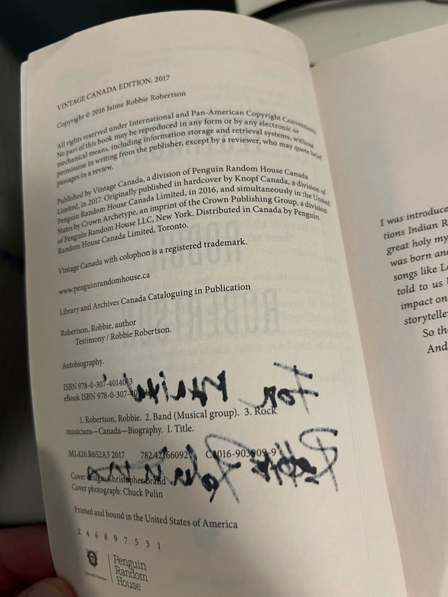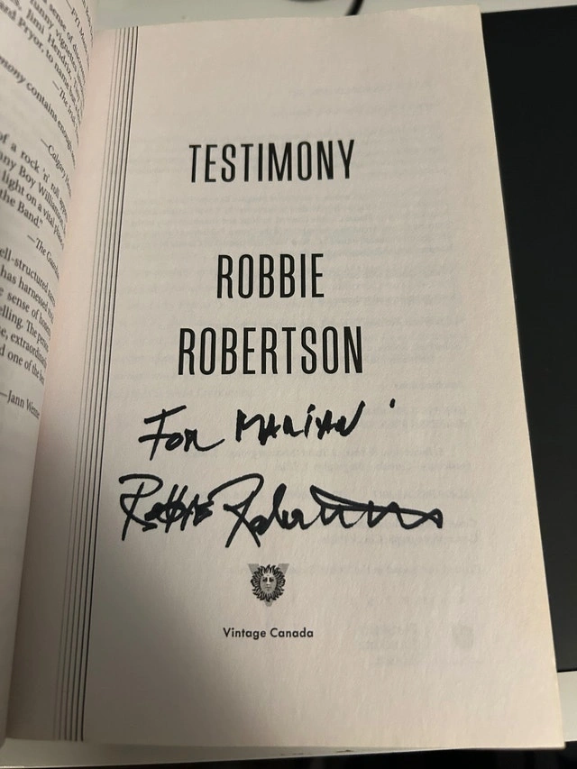 Hand signed paperback edition of Testimony by Robbie Robertson (2016). Difficult to find the signed paperback edition!