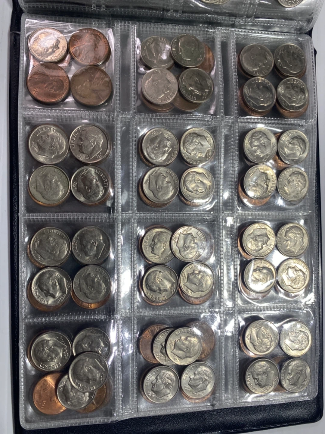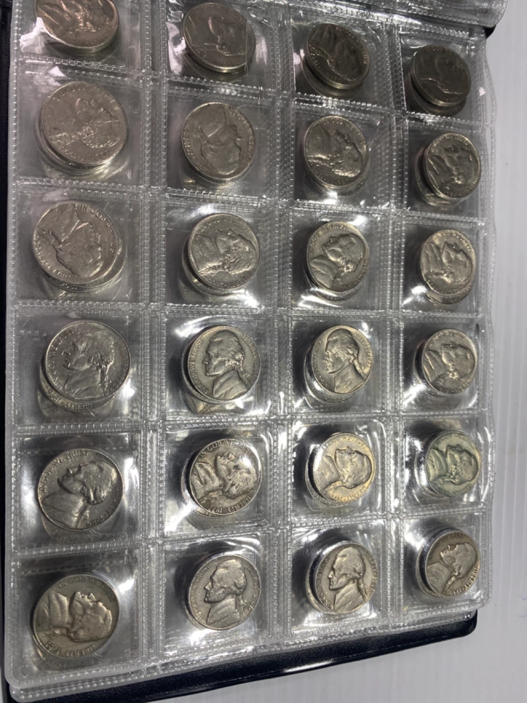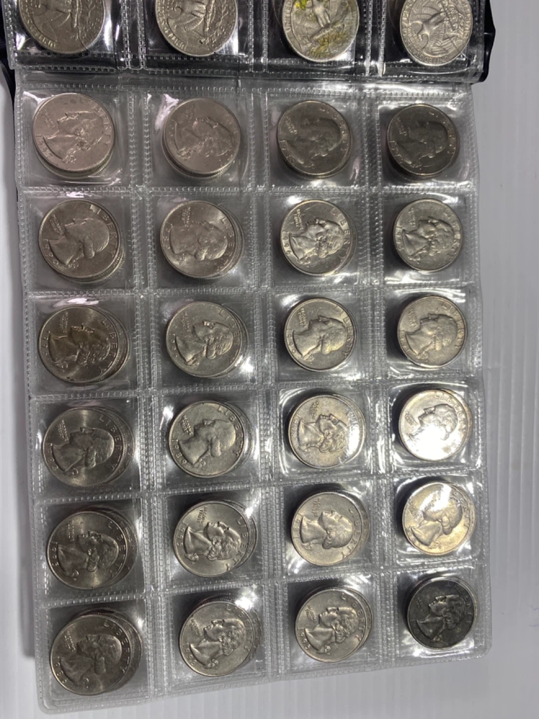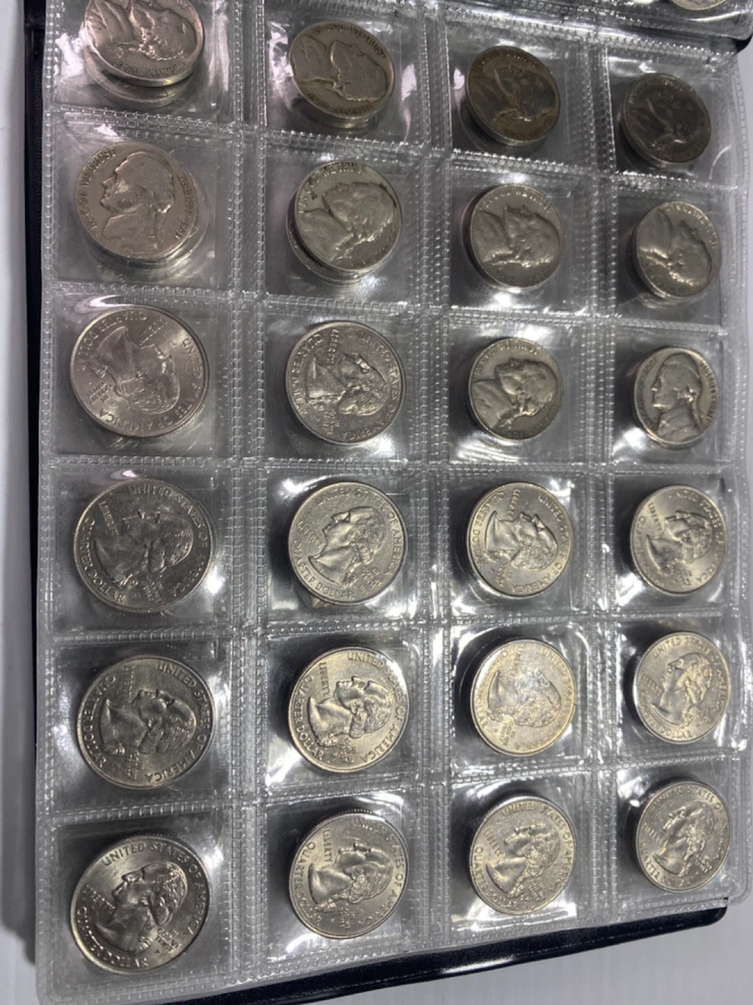 Selling a coin collection featuring US quarters and nickels. The coins are housed in a protective display case, perfect for collectors or anyone interested in numismatics. They show some signs of wear consistent with their age, but are in overall good condition