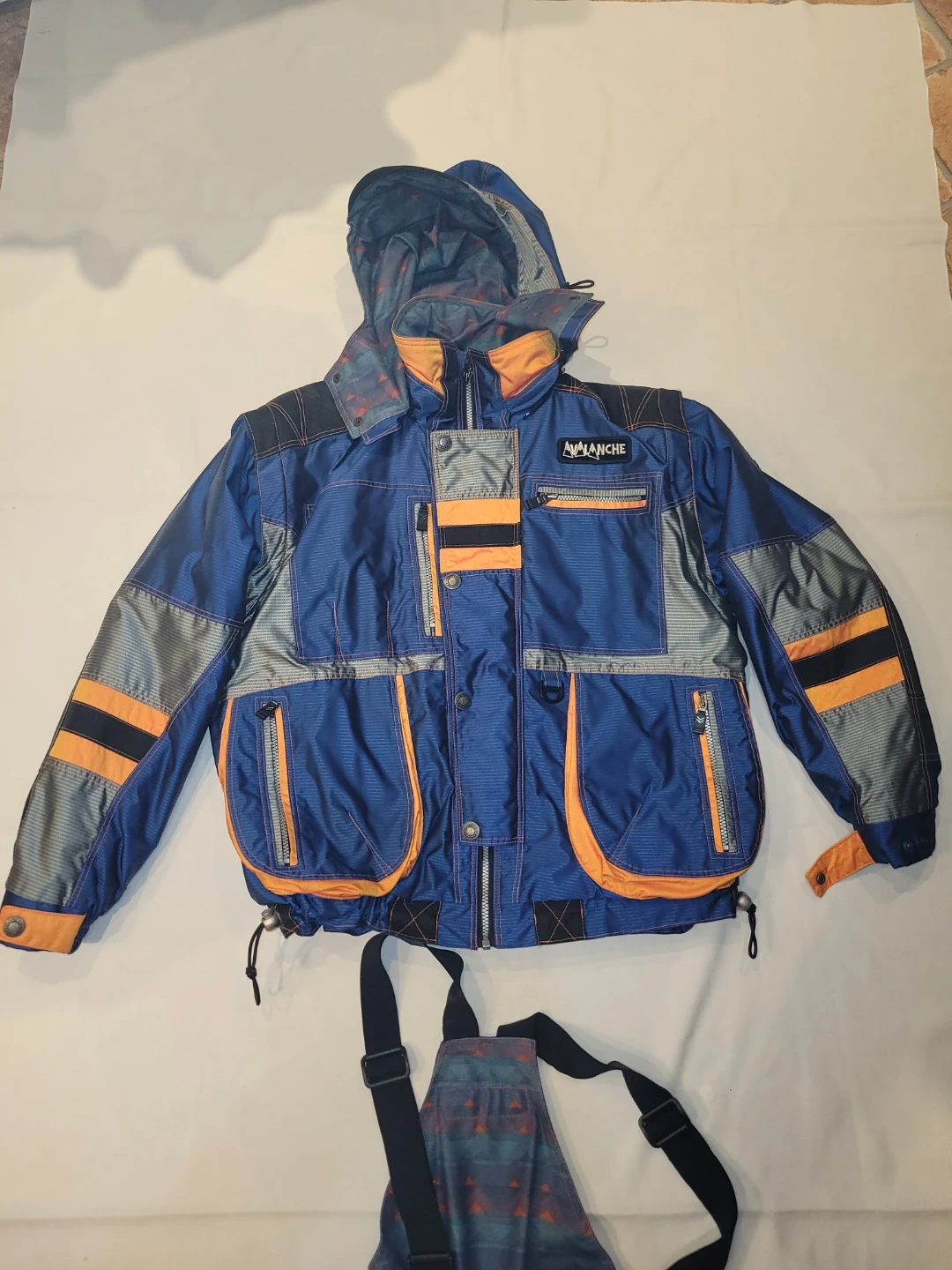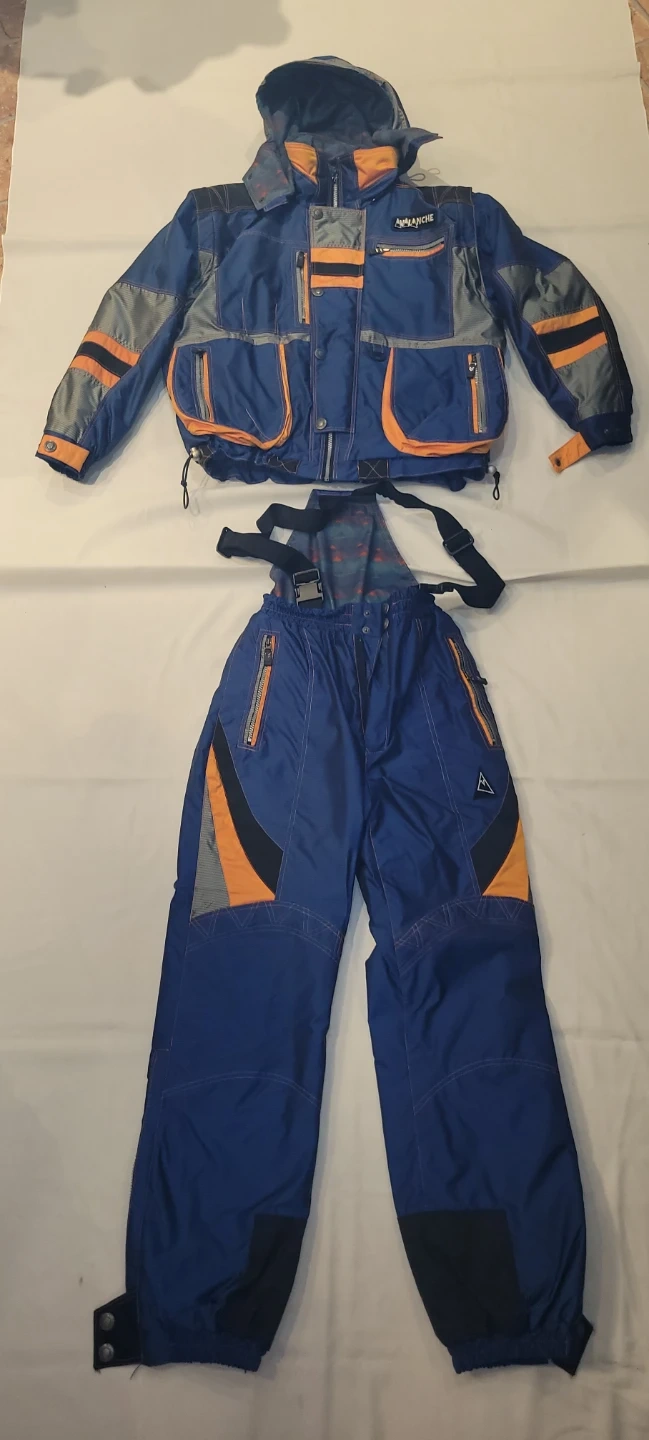 Selling an Avalanche brand ski jacket and pants set. The set is blue with orange and grey accents. Perfect for hitting the slopes this winter!