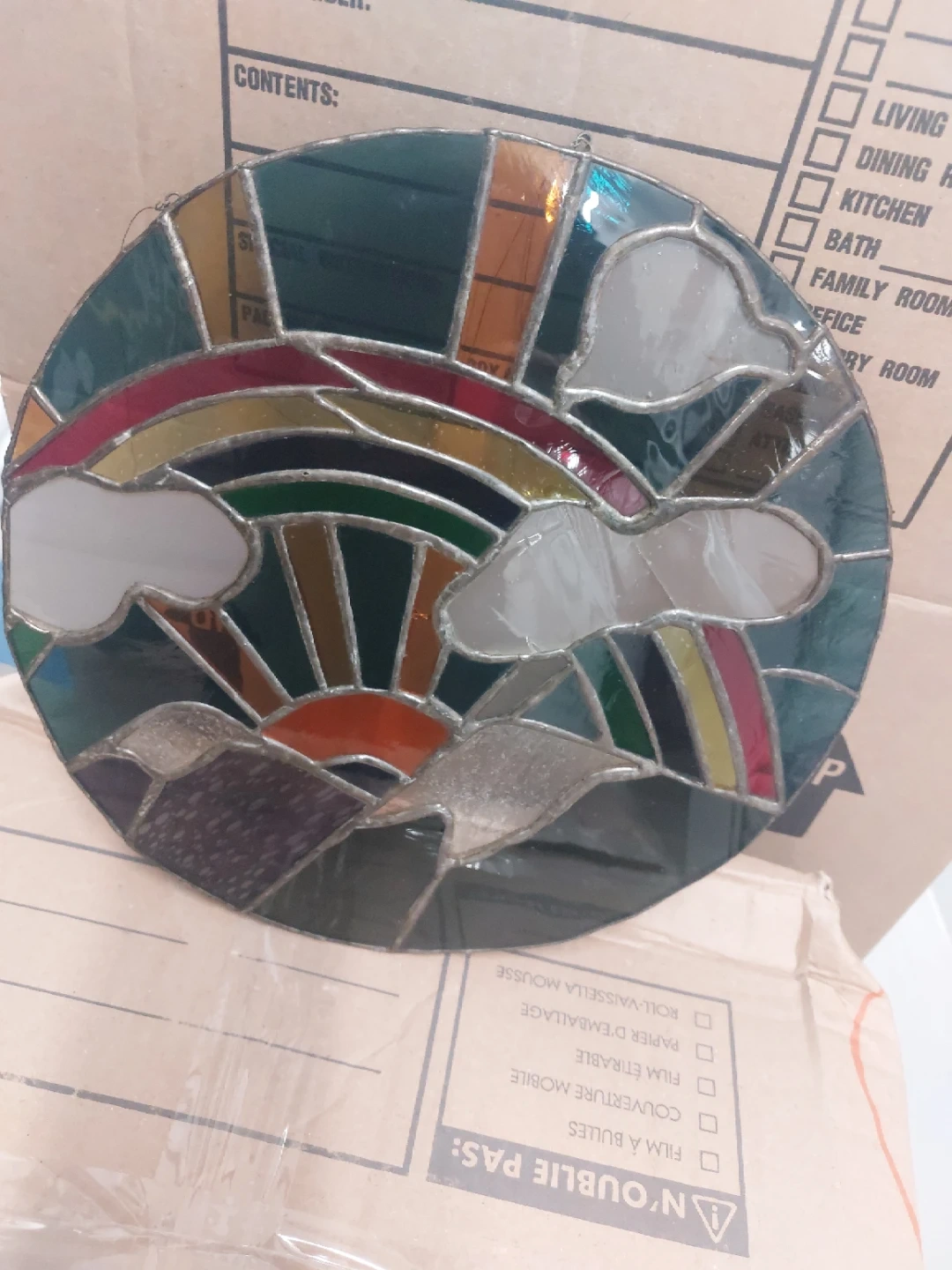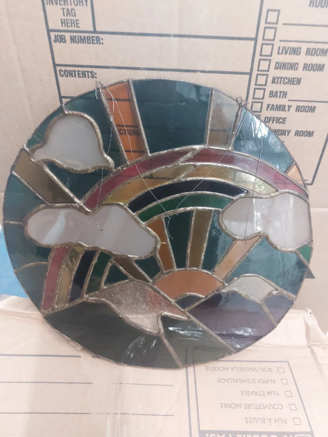 Buy & SellStained Glass Rainbow Window HangingStained Glass Rainbow Window Hanging$22This is a beautiful stained glass window hanging featuring a rainbow, clouds, and mountains. It's perfect for adding a touch of whimsy to any room!ConditionLike newWHERE TO MEET200 Fairbank AveView MapSELLERverifiedzekiCastlefield Design District17711 reviews0 chats·3 favorites·16 viewsSEND CHAT TO SELLERHi zeki! I’m interested in your listing.Hi zeki! I’m interested in your listing.Get the Karrot app to chatSign In to chat