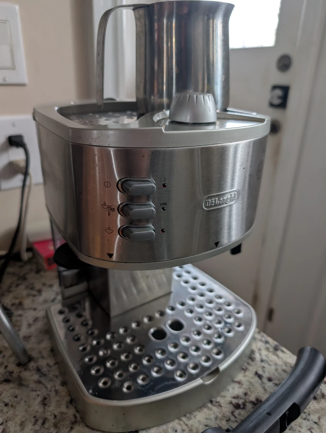 Selling a used DeLonghi espresso machine. It's in good working condition and ready to make delicious coffee at home!