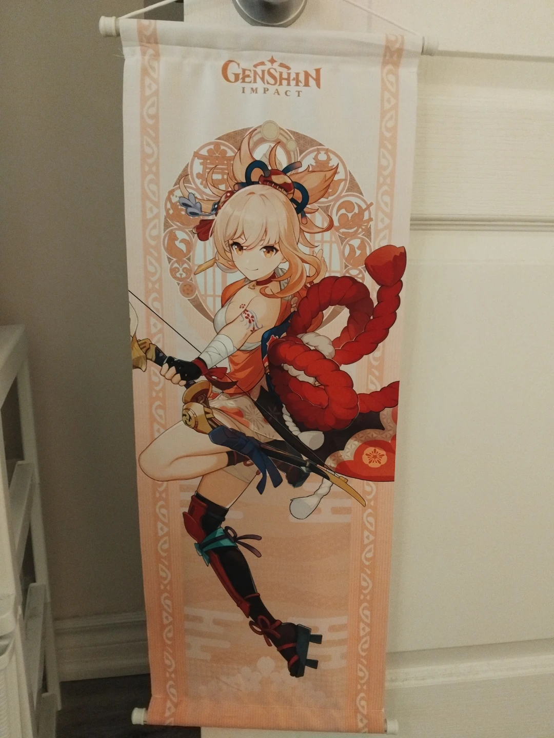 Selling a Genshin Impact wall scroll featuring Yoimiya! It's in great condition and would look great on any fan's wall