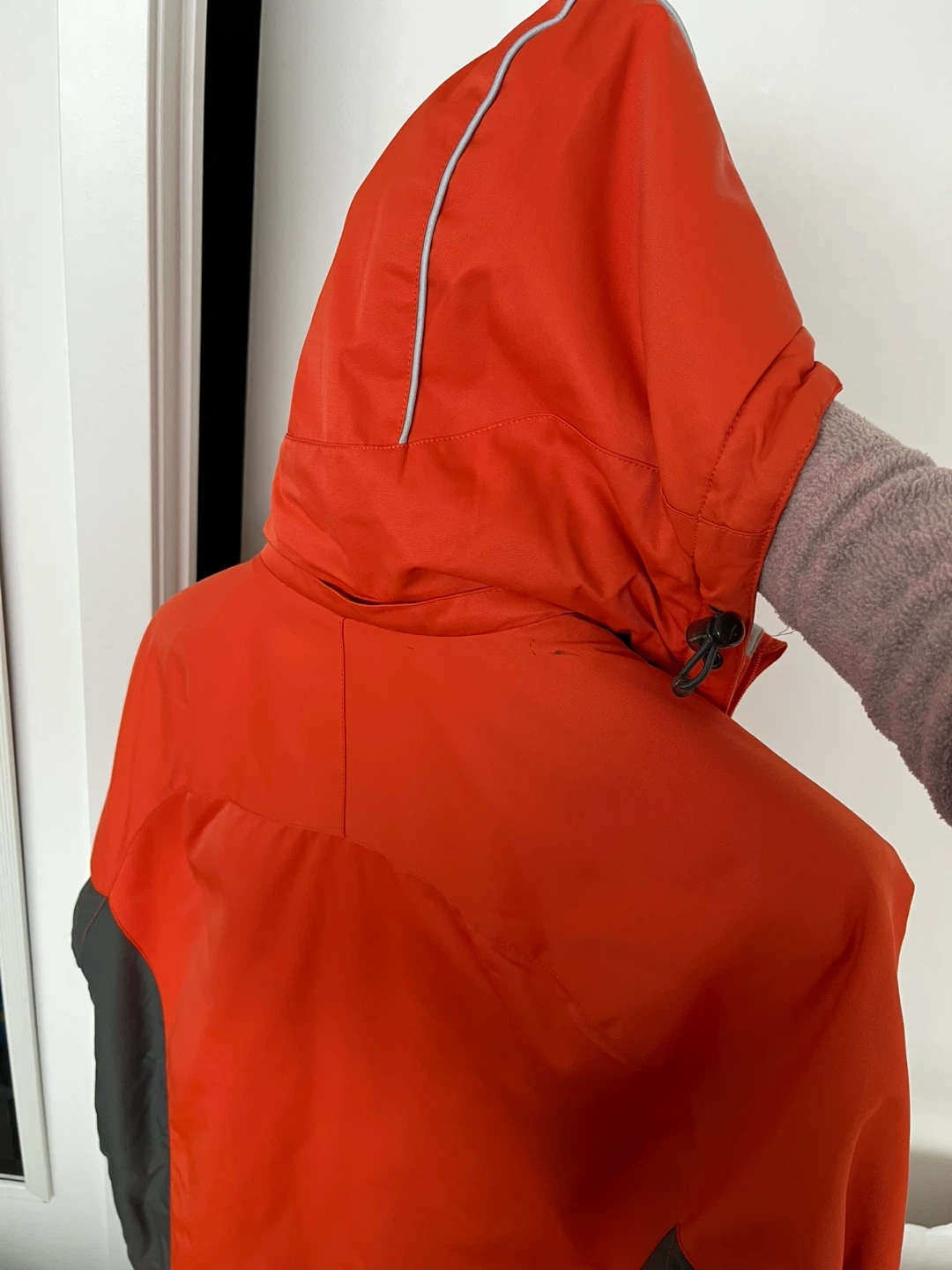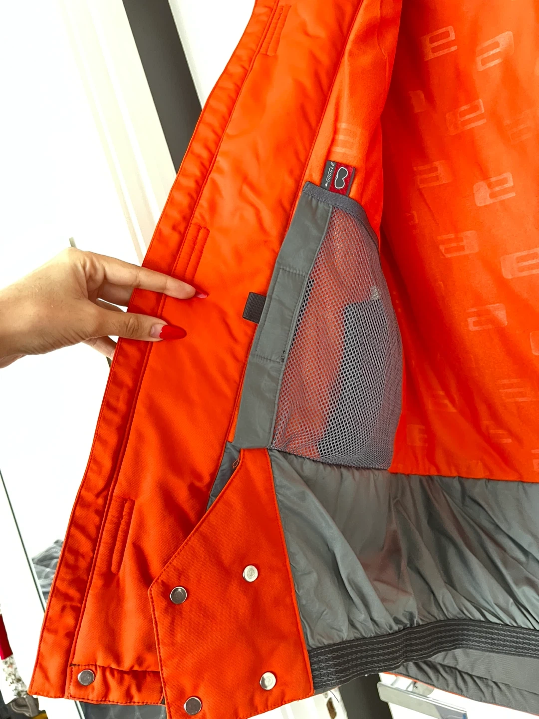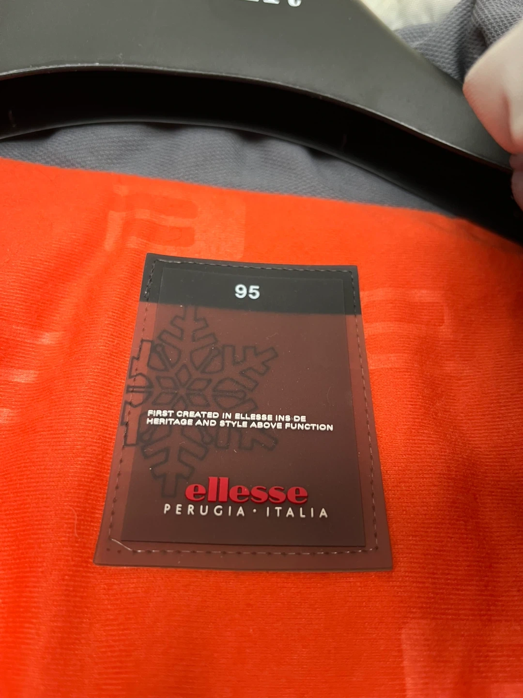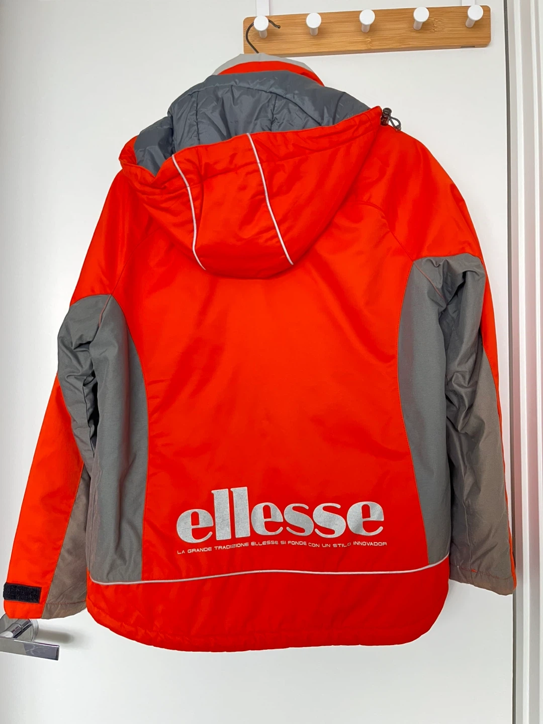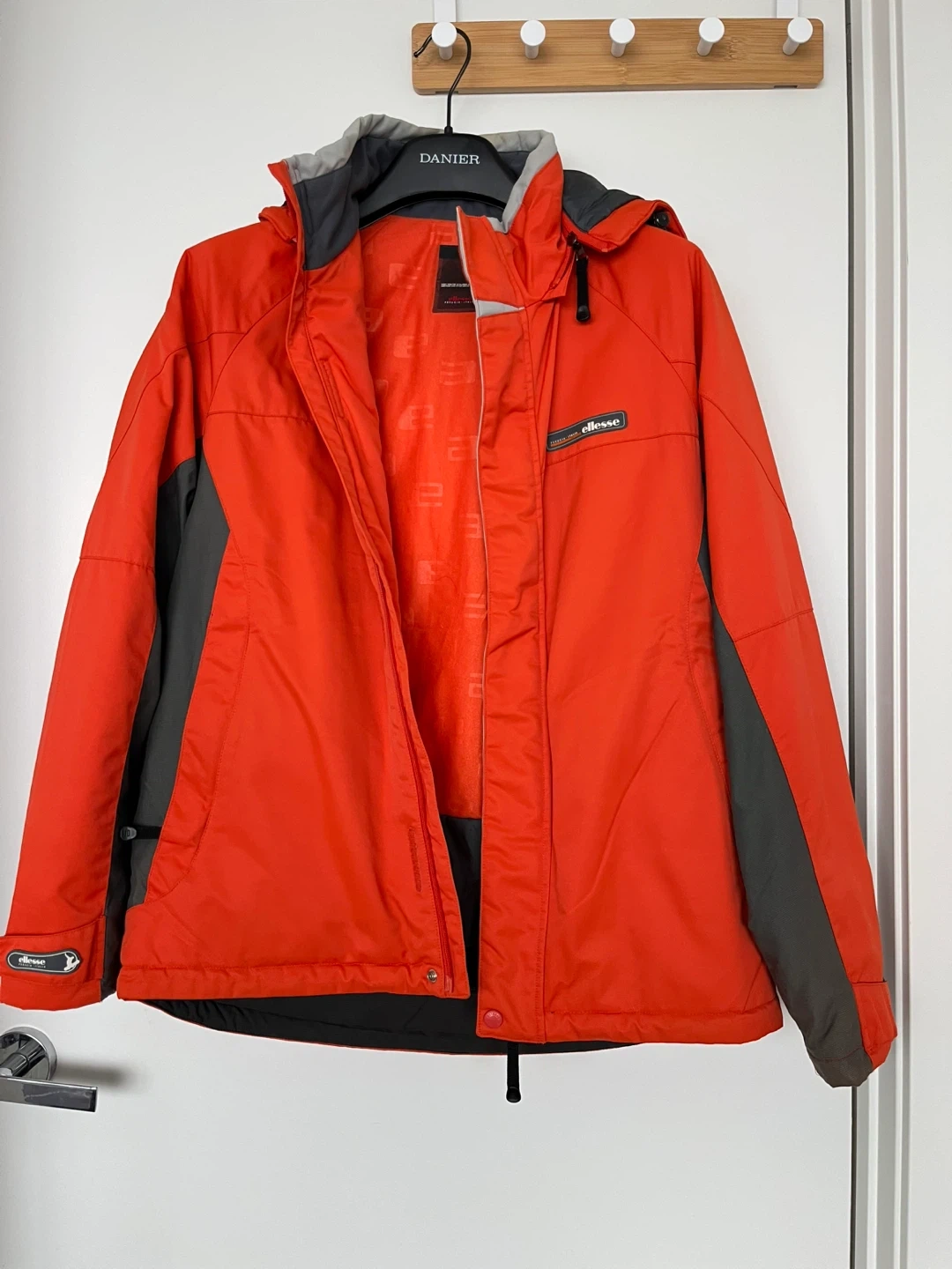I'm selling an Ellesse ski jacket in orange and grey. It's a size 95 (men’s small). Very warm and has different pockets inside. Women can wear it oversized. High quality jacket
