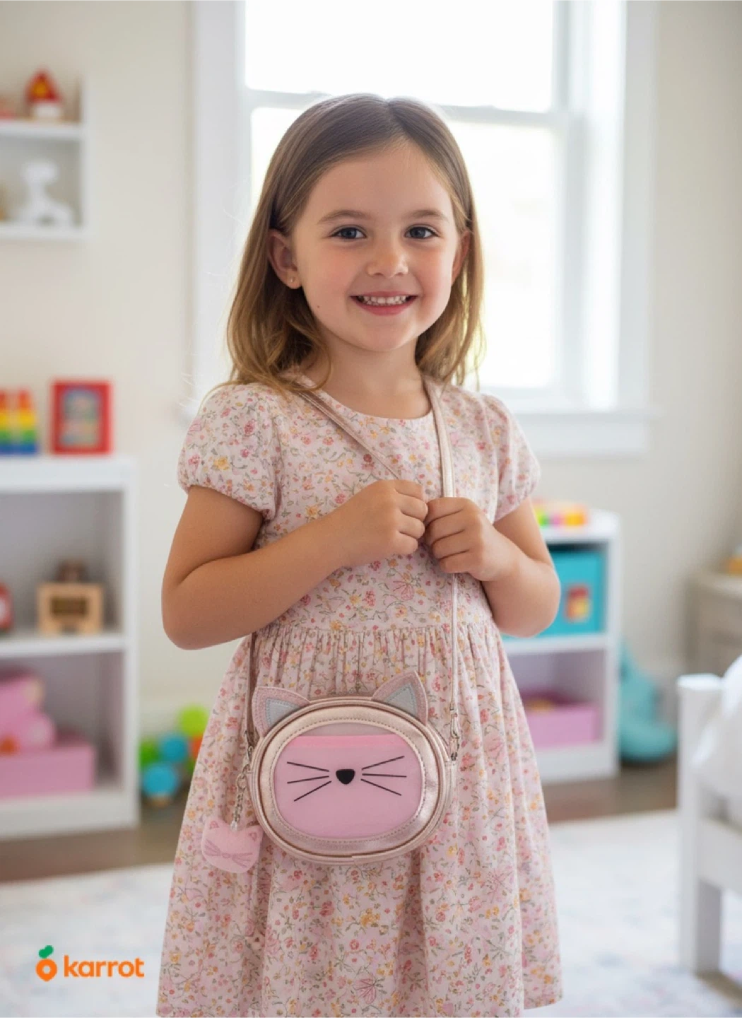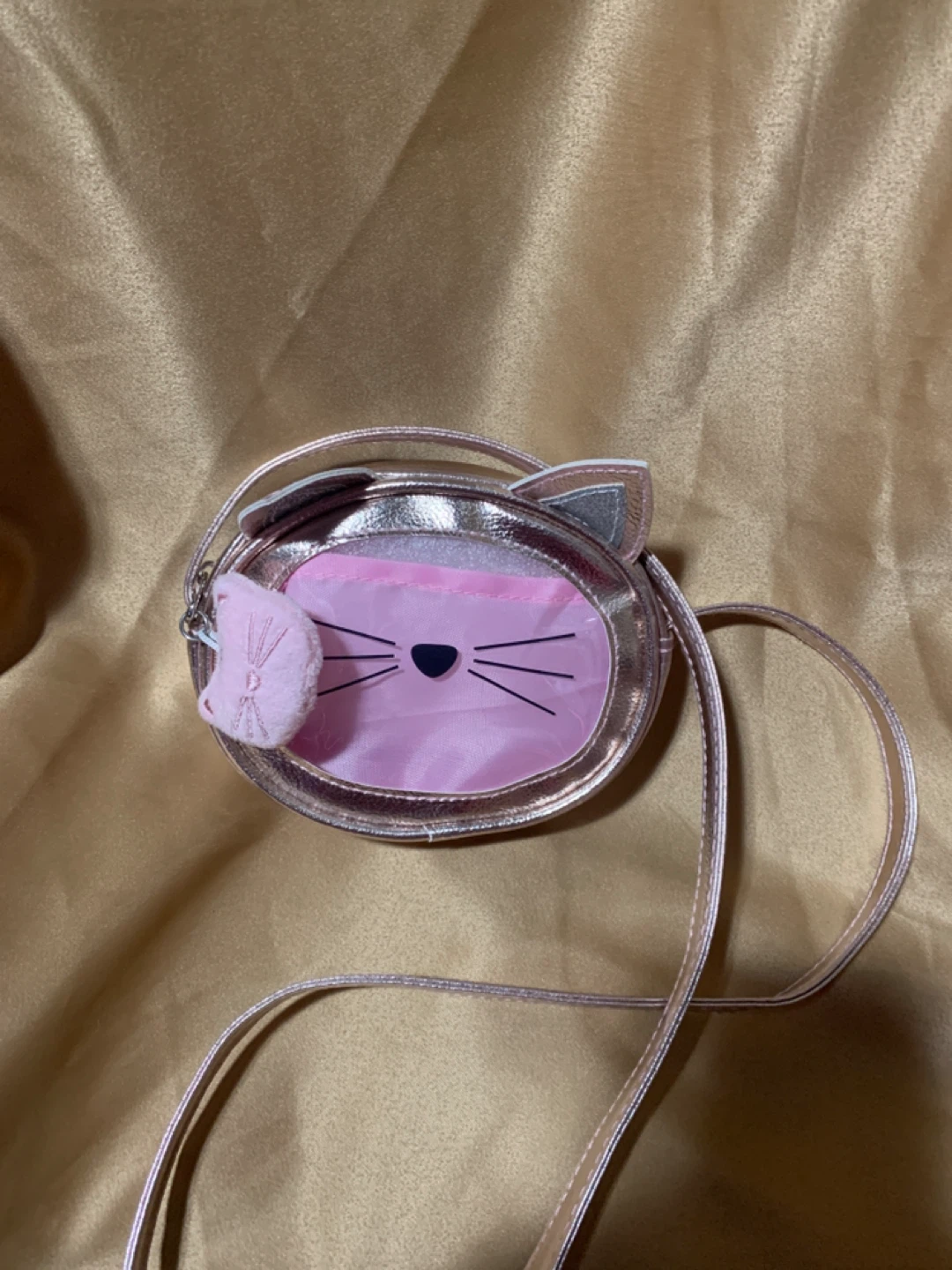 Super cute cat purse in pink and silver! It's in great condition and perfect for a little one. Has a small cat keychain attached too