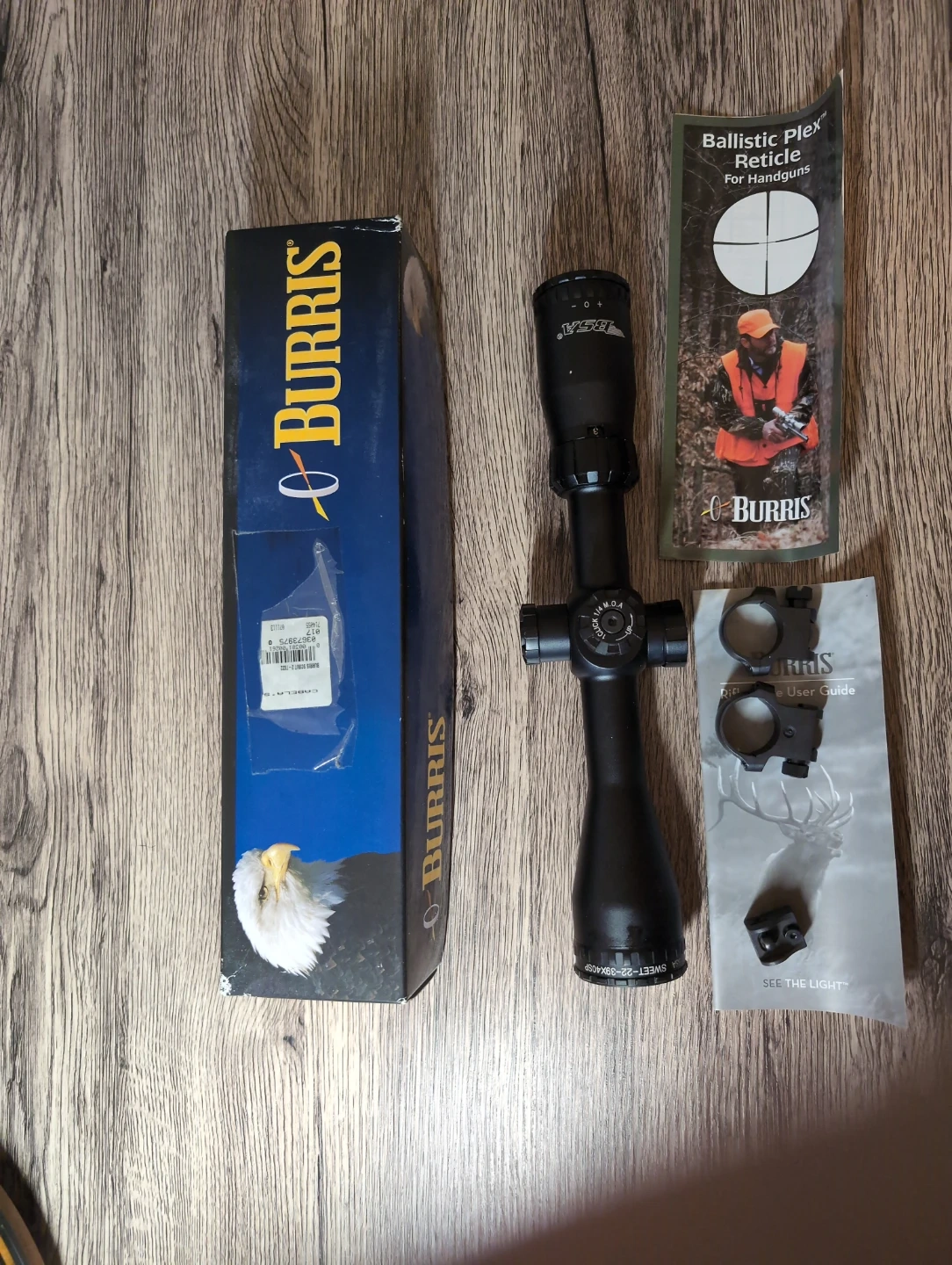 Selling a Burris Scout 2-7x-32mm rifle scope in matte black! It comes with the original box and the ballistic plex reticle for handguns. Item reference number is 200261. See the light!