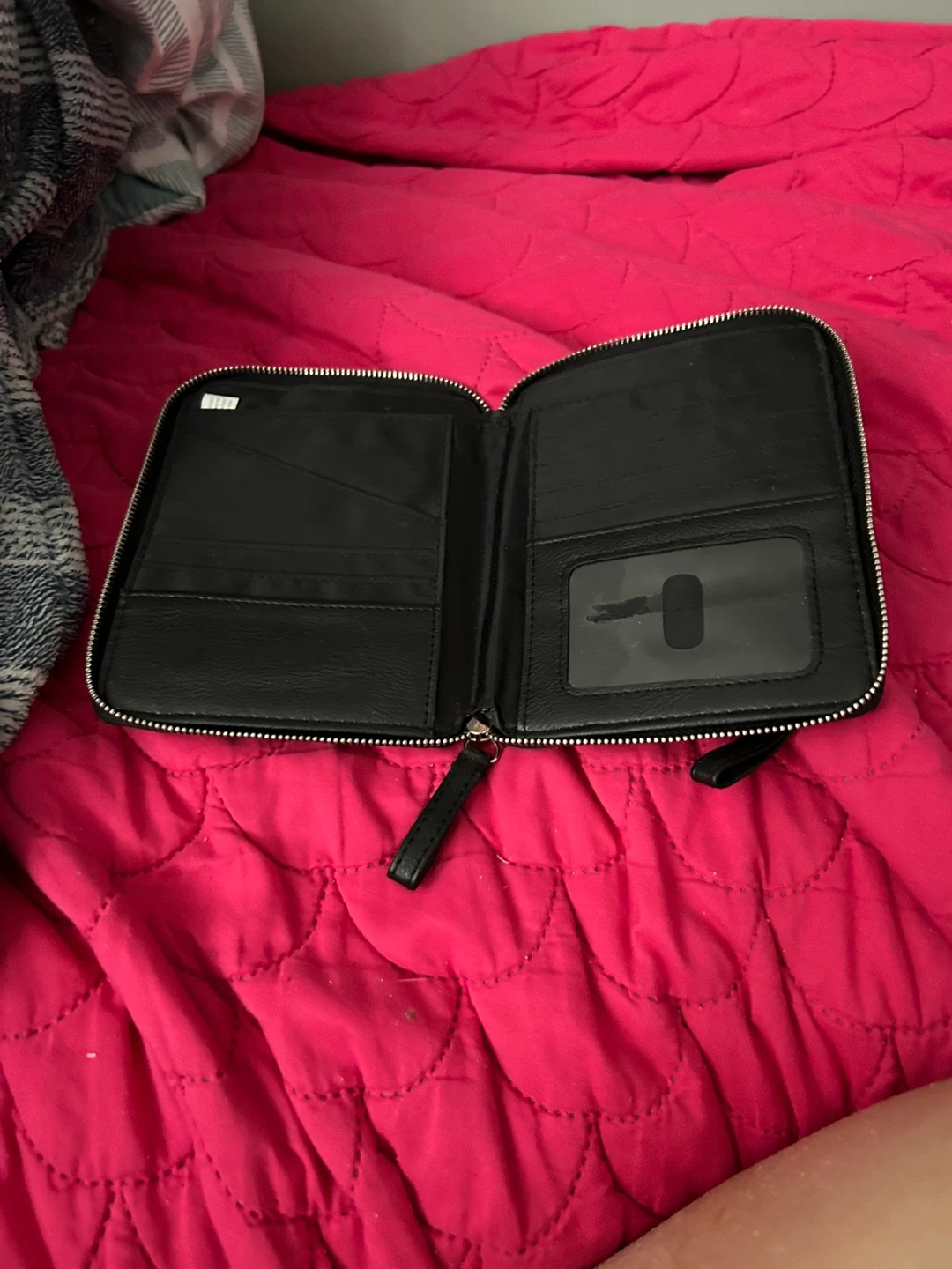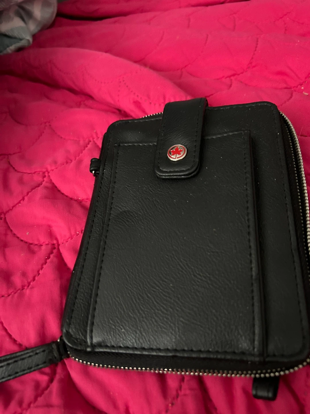 Selling a Roots black leather wallet. It features a zippered closure and a snap closure for extra security. It's in great condition and has plenty of room for cards and cash. Perfect for everyday use!