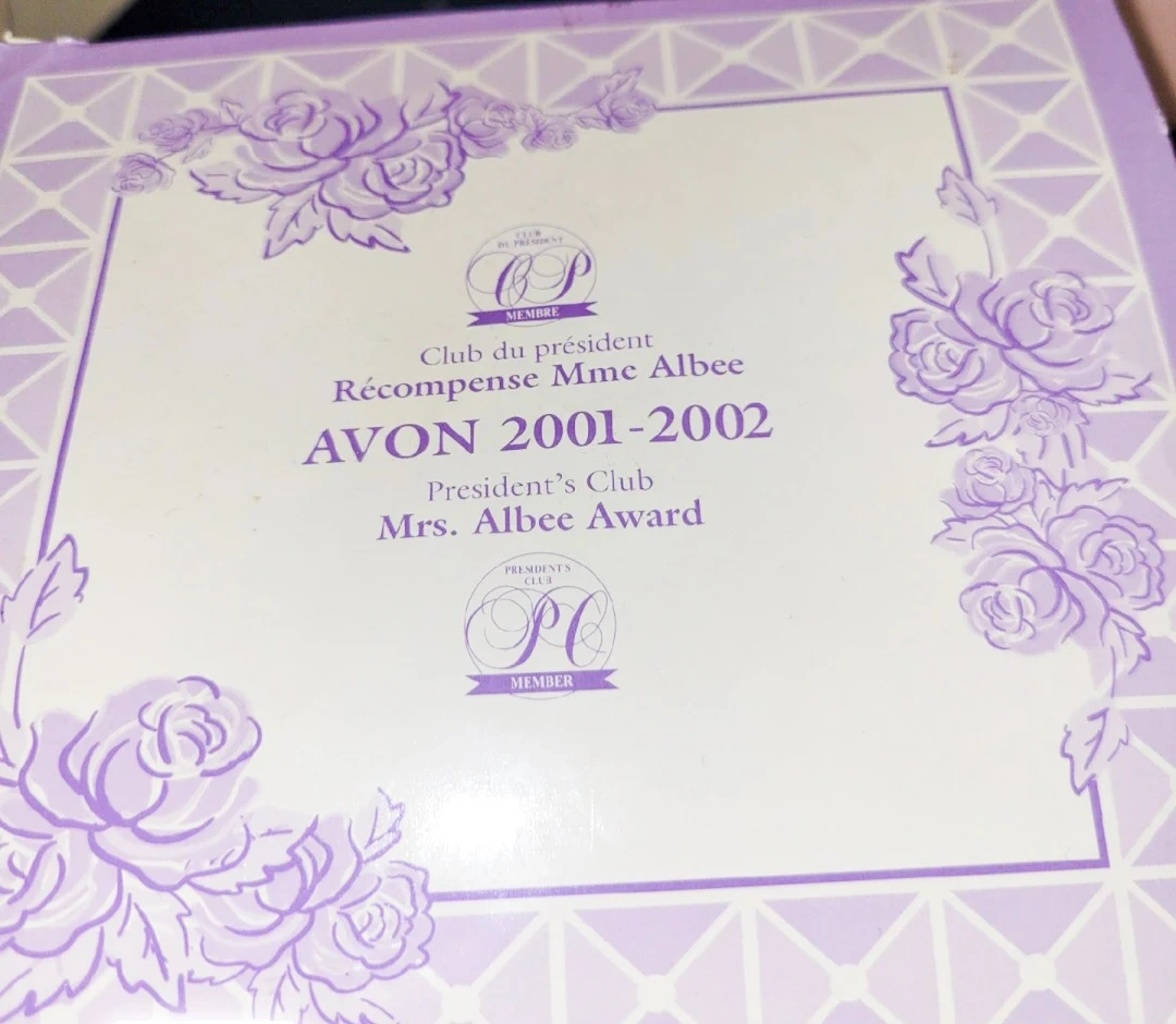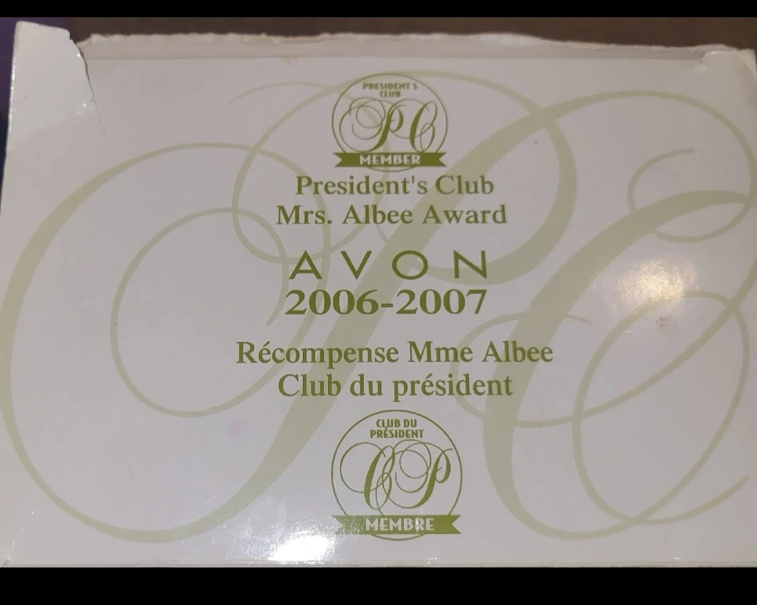 I'm selling two Avon President's Club Mrs. Albee Award Figurine. It comes in its original box and packaging. This figurine is from the Avon 2006-2007 President's Club Mrs. Albee Award collection. It is in great condition! $30 for botj