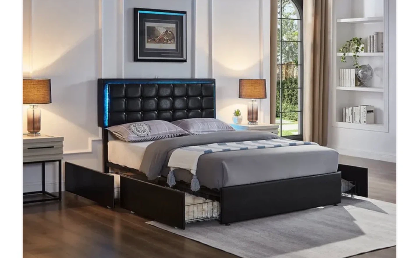 LED lights โข Storage drawers