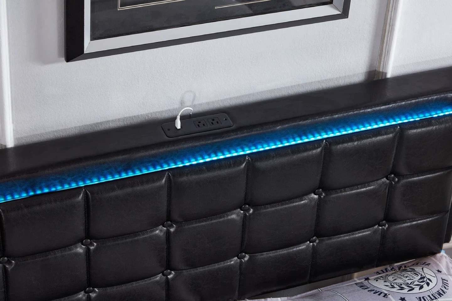 Black LED Lighted Upholstered Bed Frame