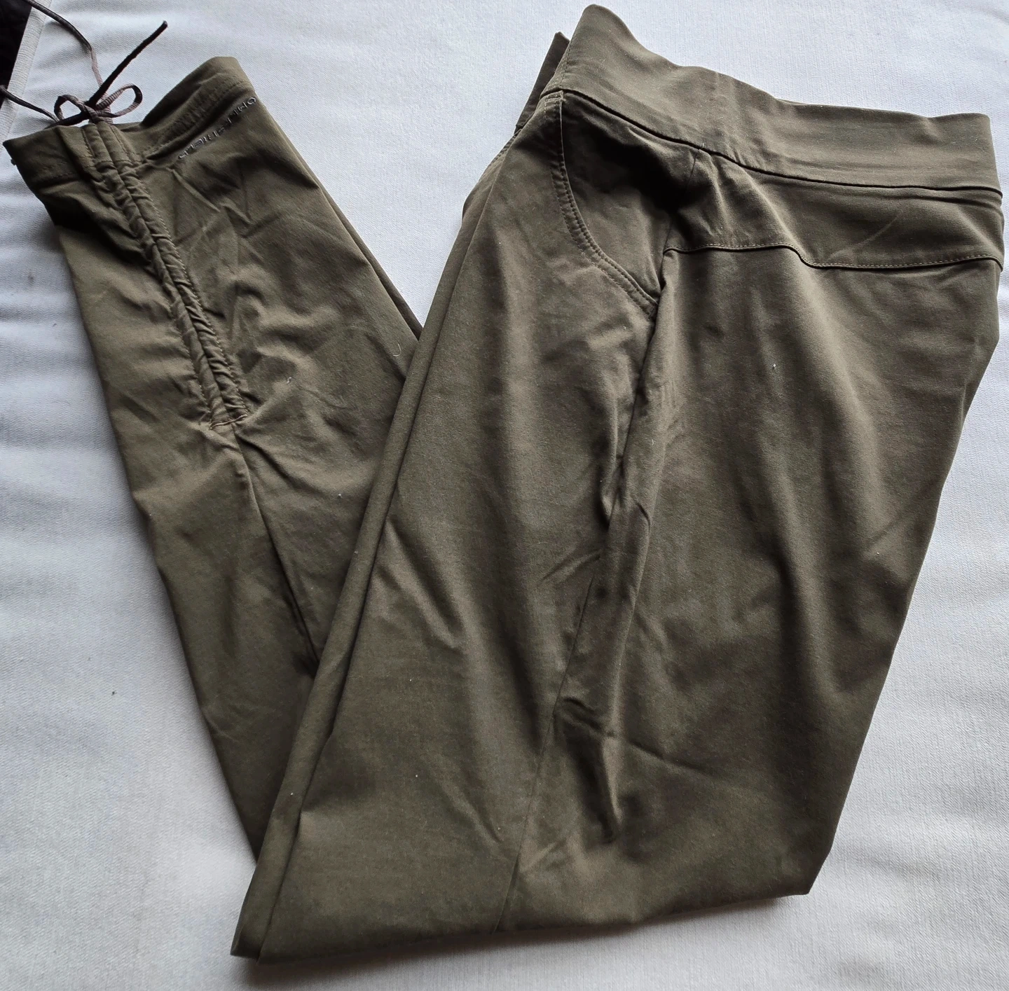 Perfect for traveling, summer, hiking. Lightweight material. Tapered leg. Ties on the bottle of pant legs. In excellent condition. Infrequent wear. Quality wear.