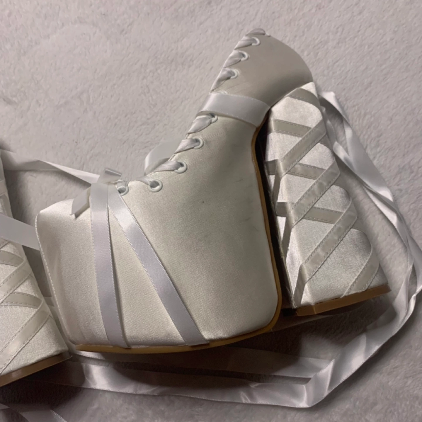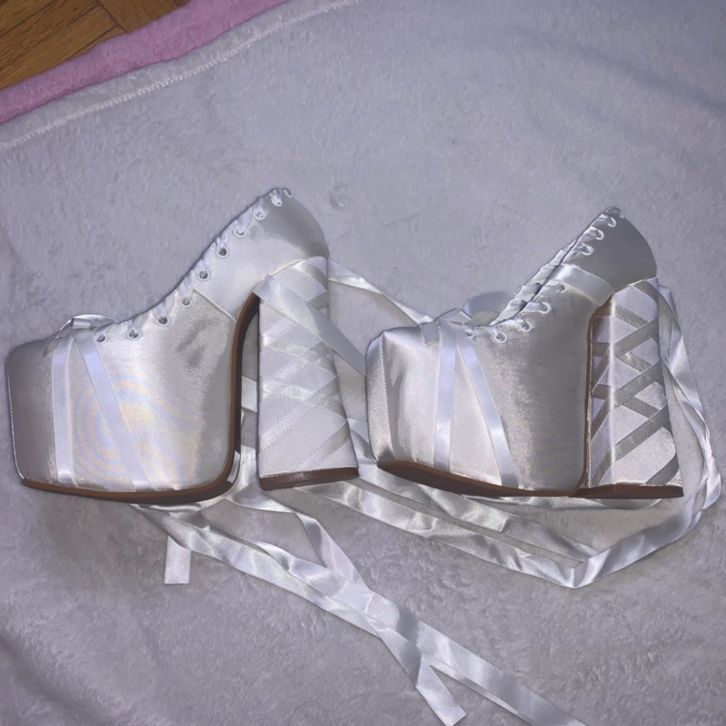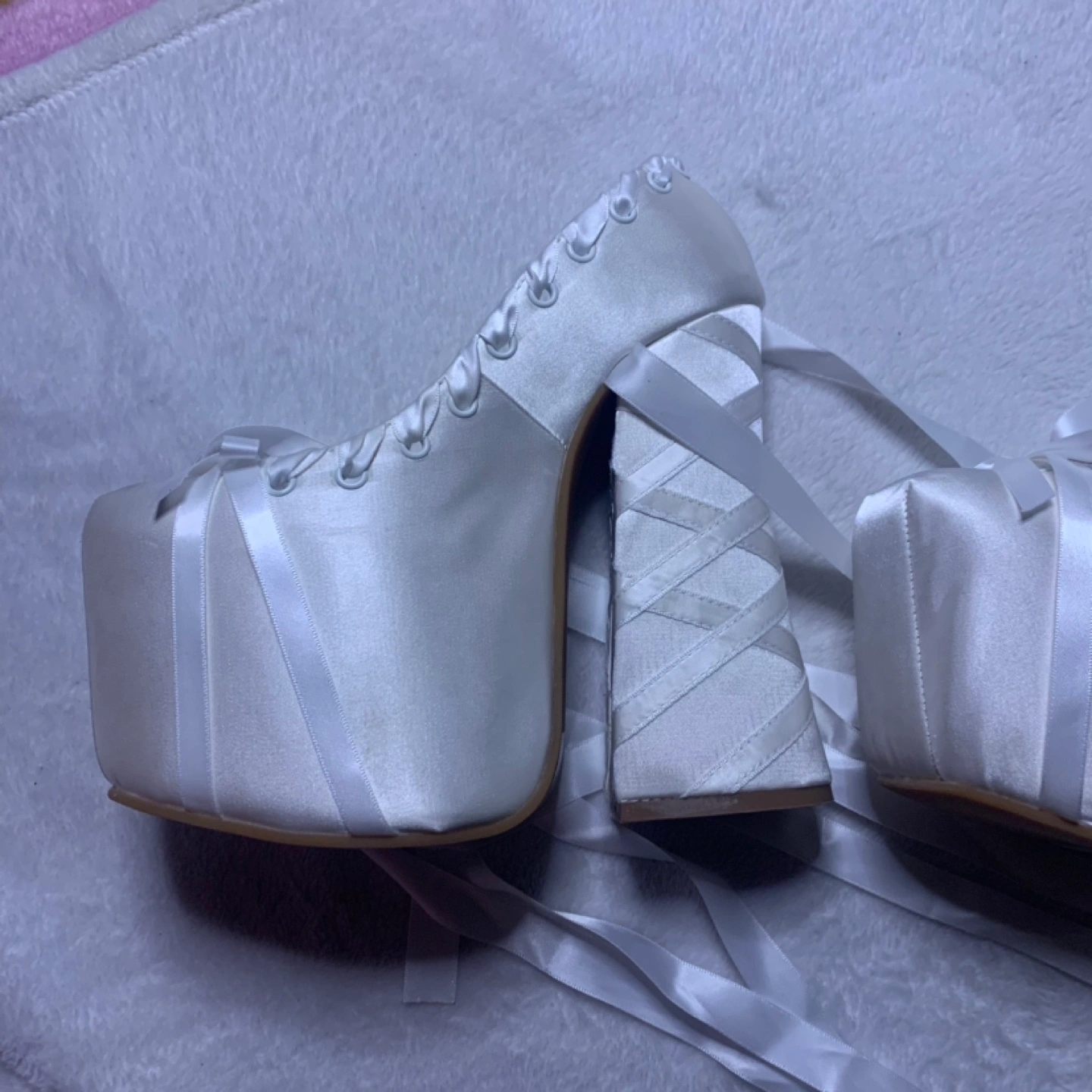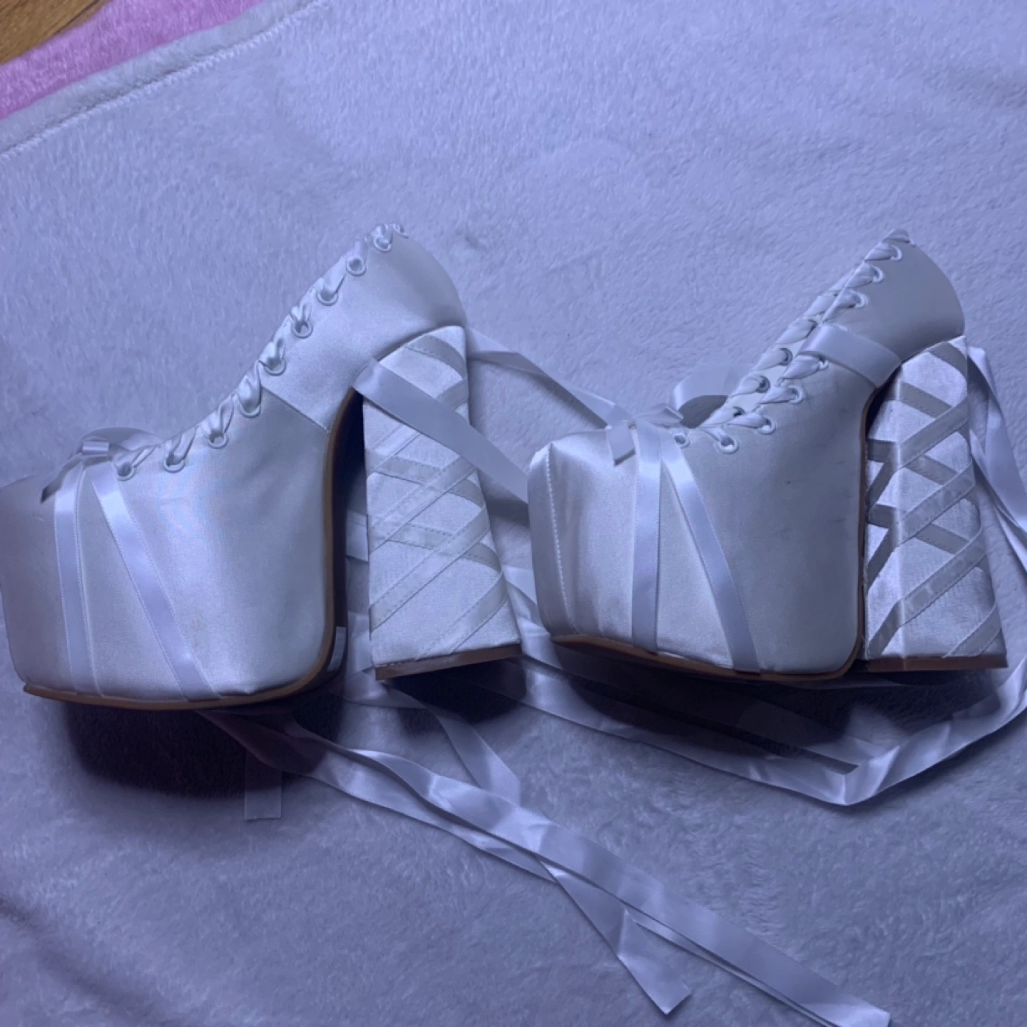 used once for a photoshoot indoors! small scfuffs on the side of one shoe as shown, otherwise excellent condition!