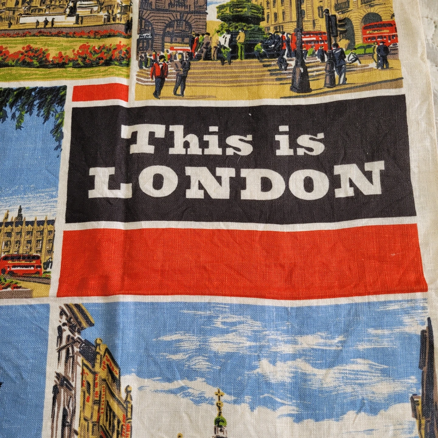 Vintage Irish Linen Kitchen Tea Towel 30"x20" London