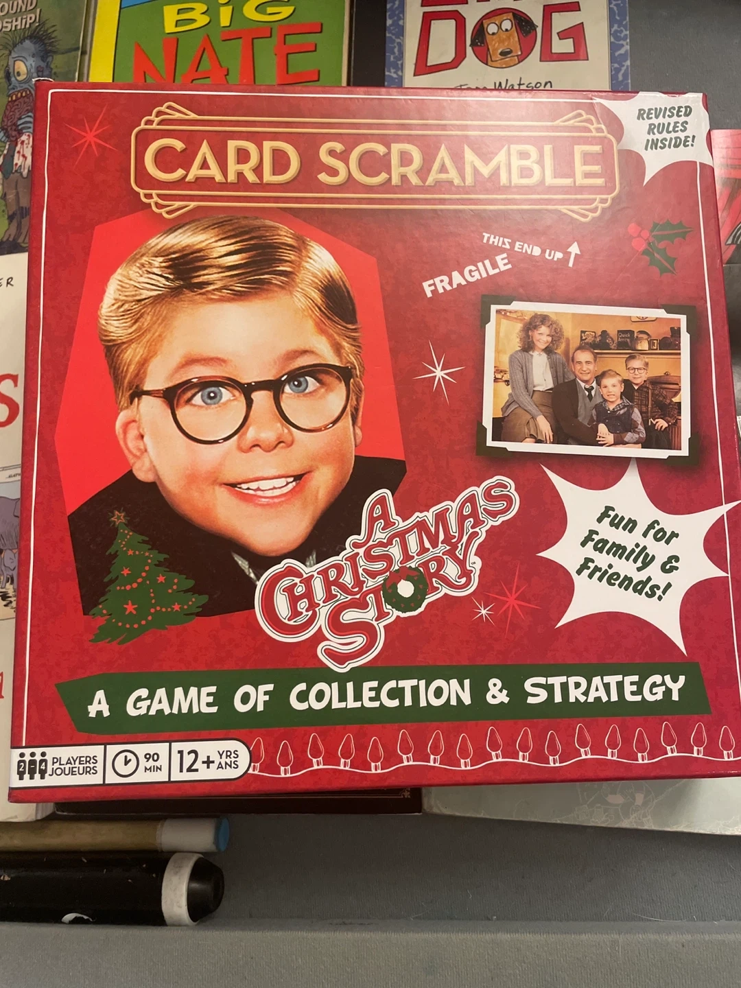 Selling A Christmas Story Card Scramble board game. It's a game of collection and strategy, perfect for family and friends! Includes all the pieces and cards, ready for a new round of holiday fun