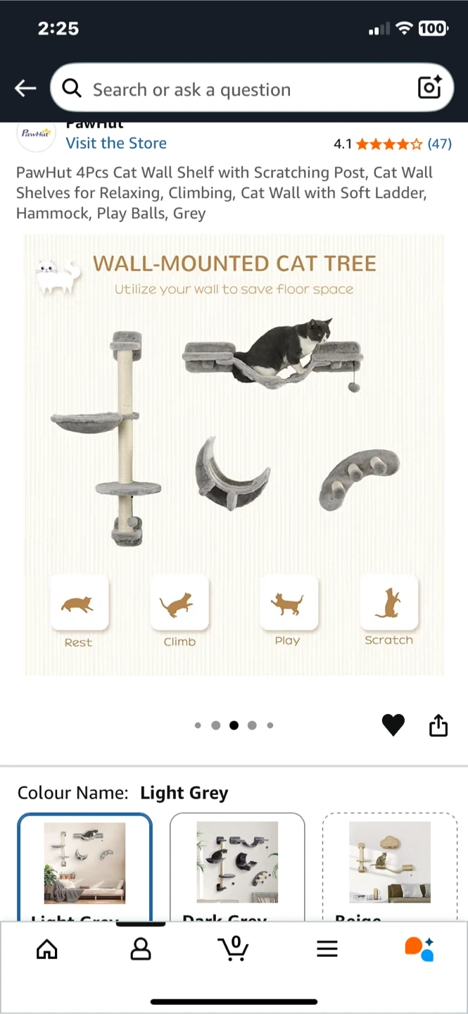 4-Piece Cat Wall Shelf - Light Grey *BRAND NEW IN THE BOX*