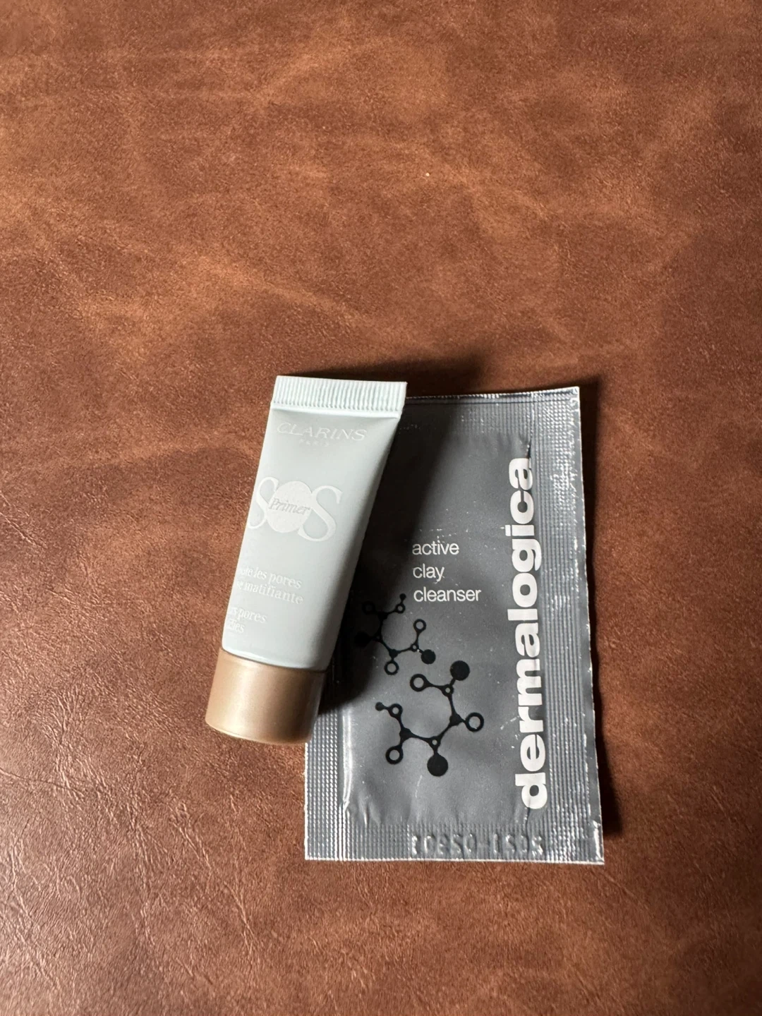 Offering a Clarins SOS Primer and a Dermalogica active clay cleanser sample. Perfect for trying out these products before committing to the full size