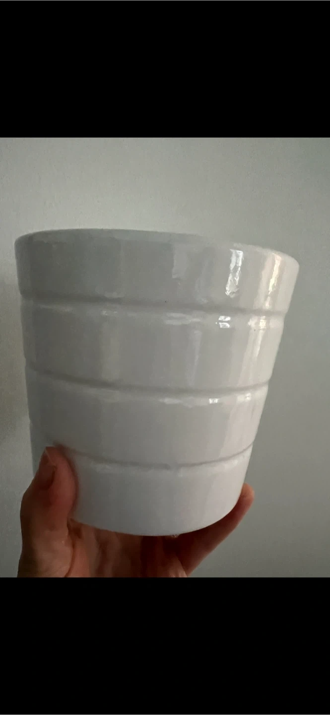Selling a white IKEA Kardemumma flower pot. It's in great condition and ready for your favourite plant! The pot measures approximately 10.5 cm (4 1/4") in diameter.