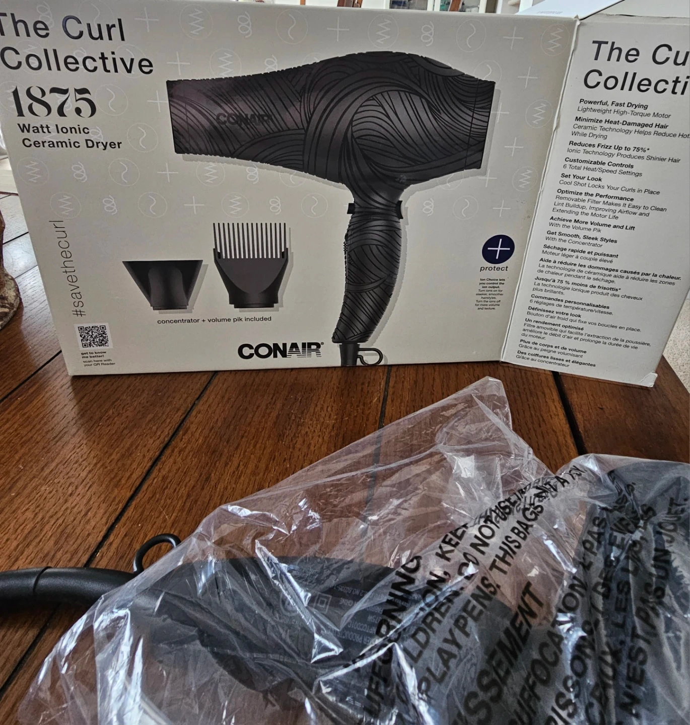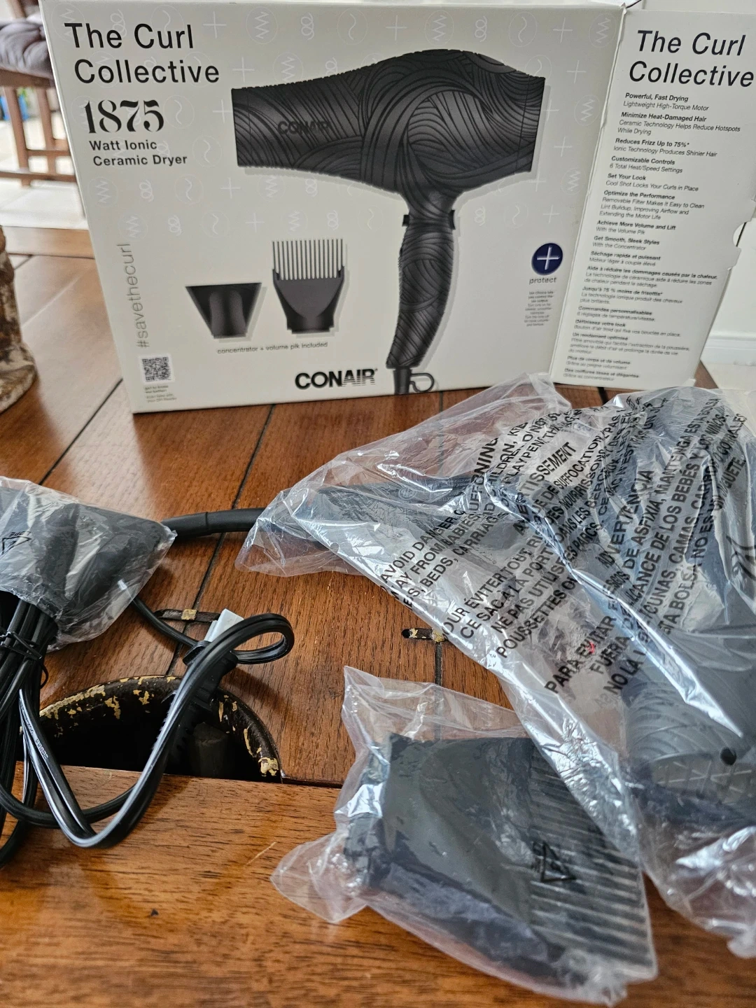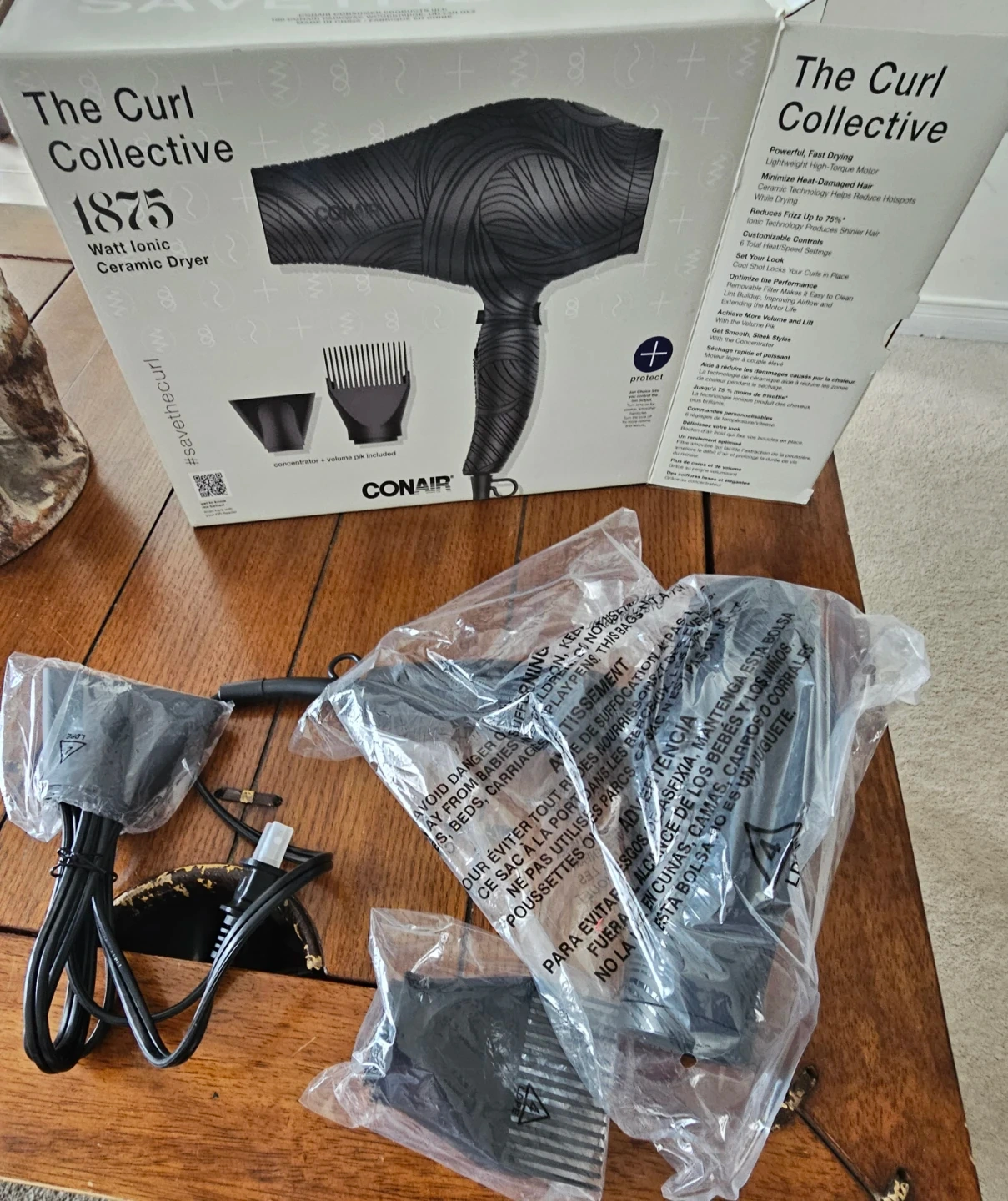 I'm selling a Conair The Curl Collective 1875 Watt Ionic Ceramic Dryer. It's a powerful, fast drying hair dryer with a lightweight, high-torque motor. It also minimizes heat-damaged hair and reduces frizz up to 75%! The box and all included components are included.