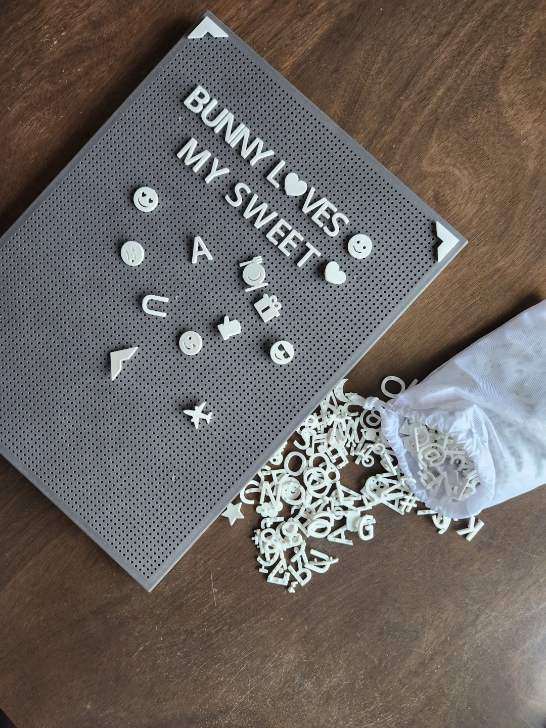 Selling a letter board with a bunch of white letters! Perfect for adding some fun messages to your home decor.