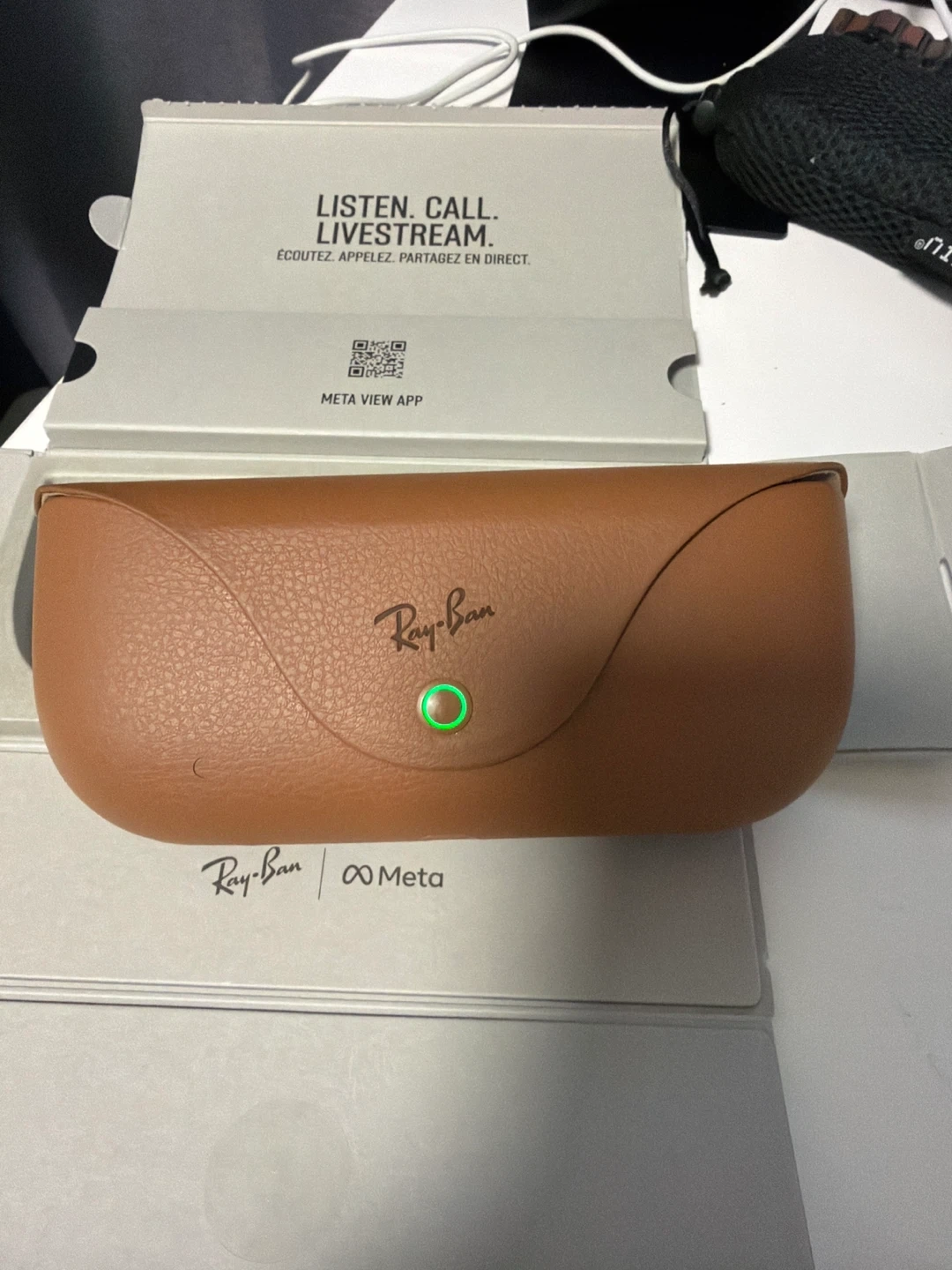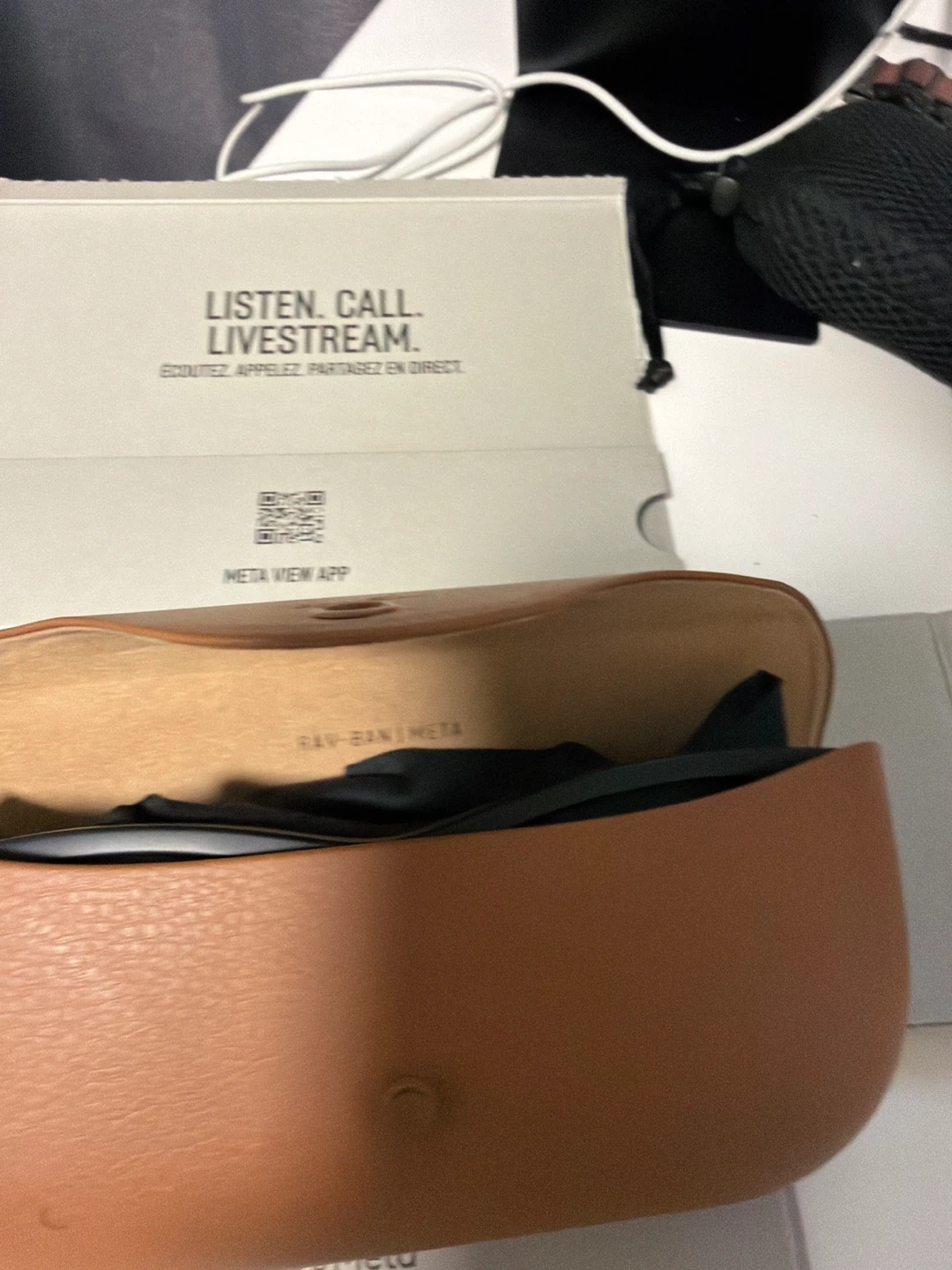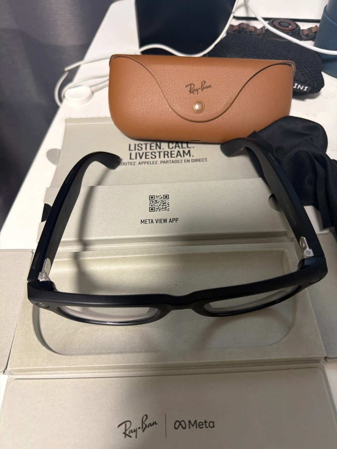 Selling a pair of Ray-Ban Meta smart glasses, They're in great shape and come with the original box and case. These glasses let you listen to music, take calls, and even livestream!