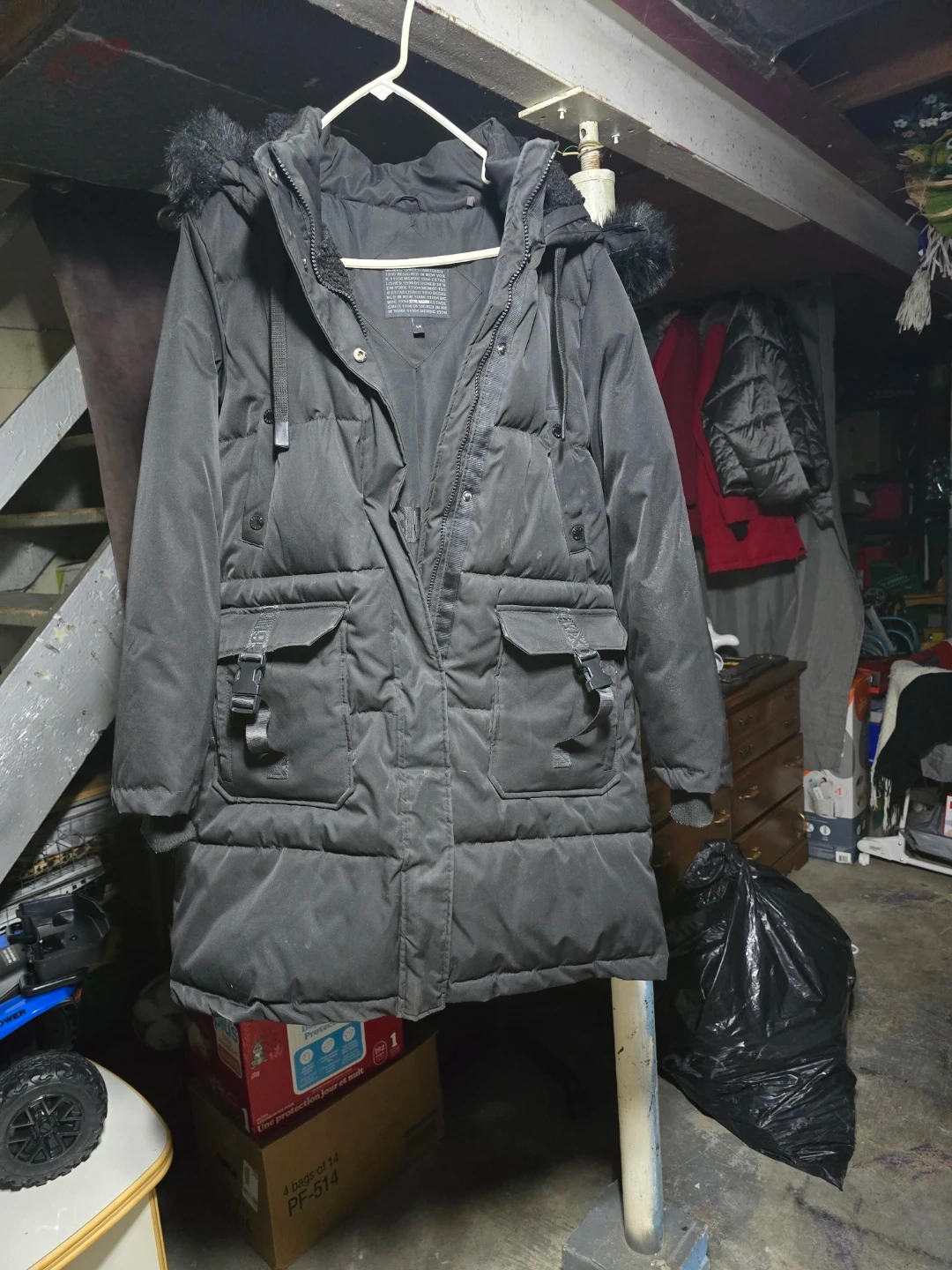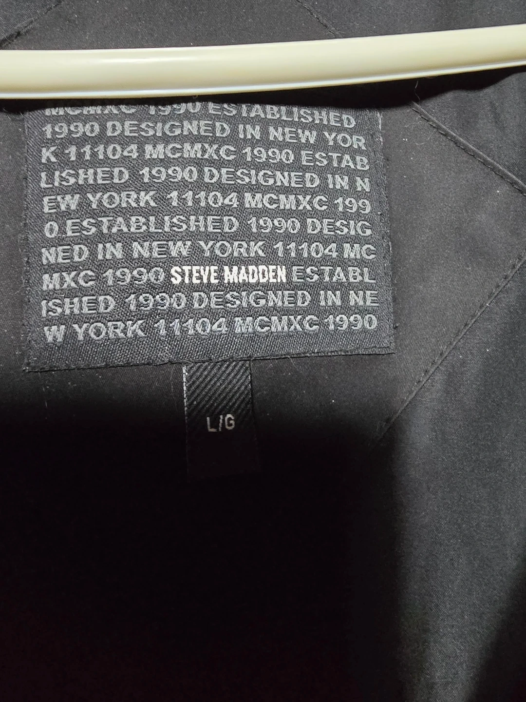 Selling a Steve Madden black puffer coat in size L/G. It's in great condition and perfect for the colder weather! It features a stylish design and is sure to keep you warm and cozy.