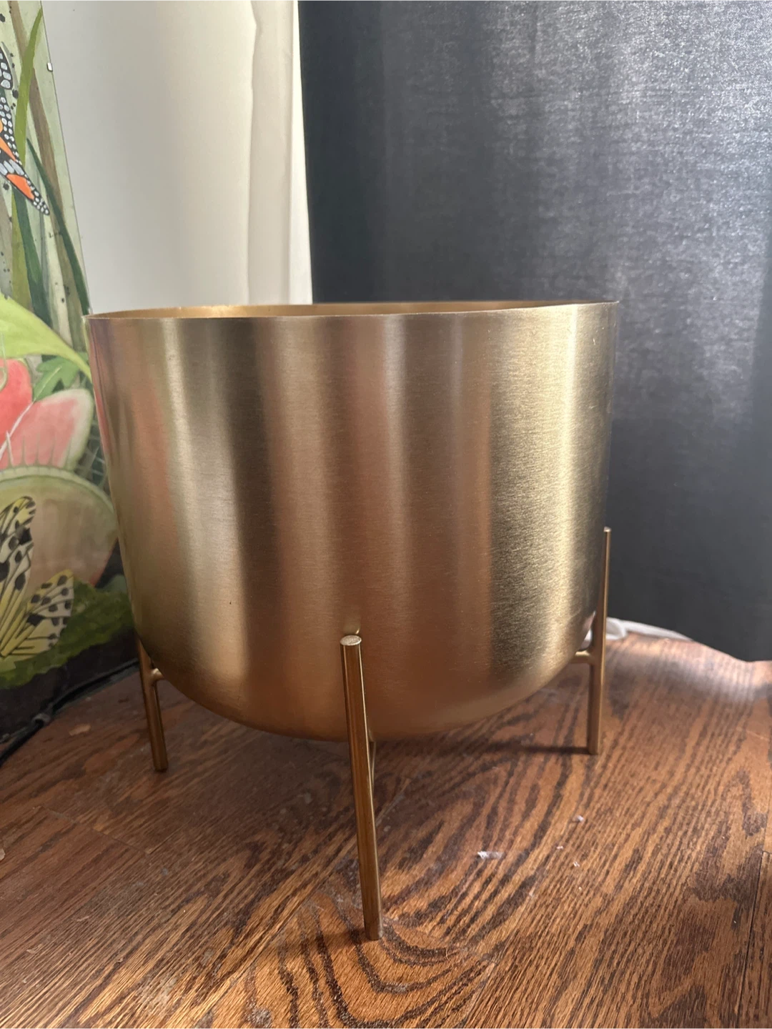 Selling an elegant brushed gold metal plant pot with a stand! It's perfect for adding a touch of modern elegance to your home decor. The pot is in great condition and ready to display your favorite plants