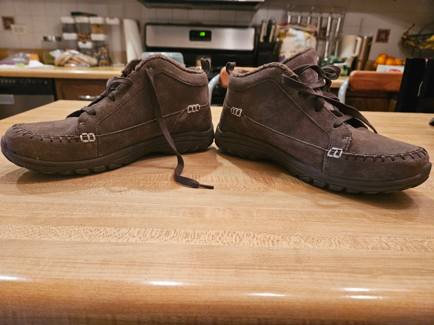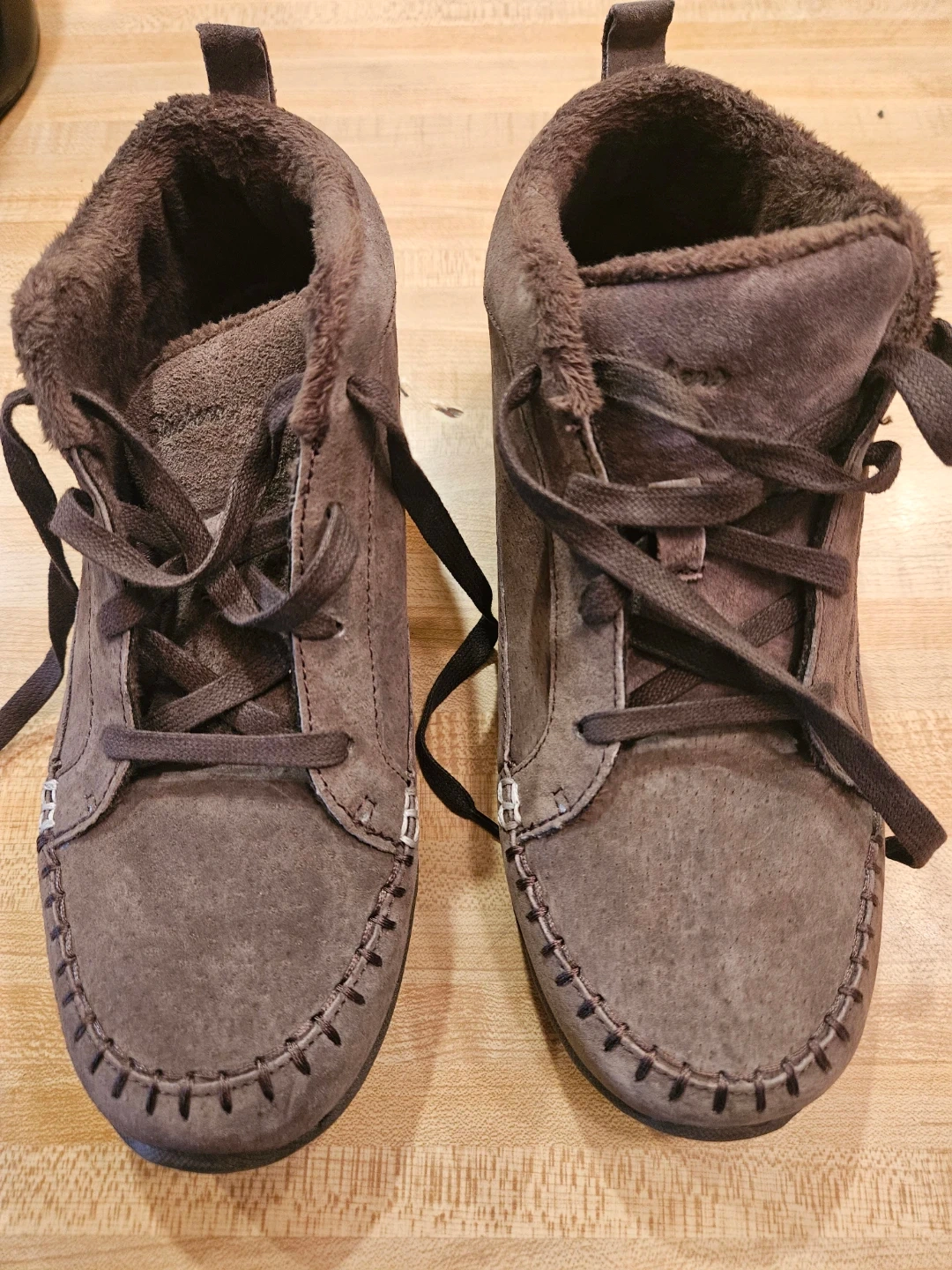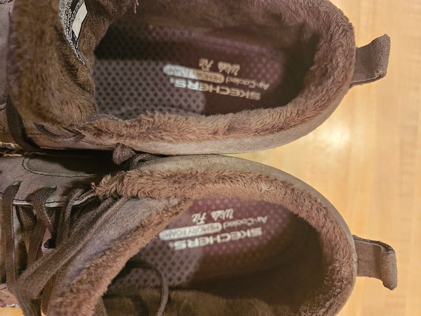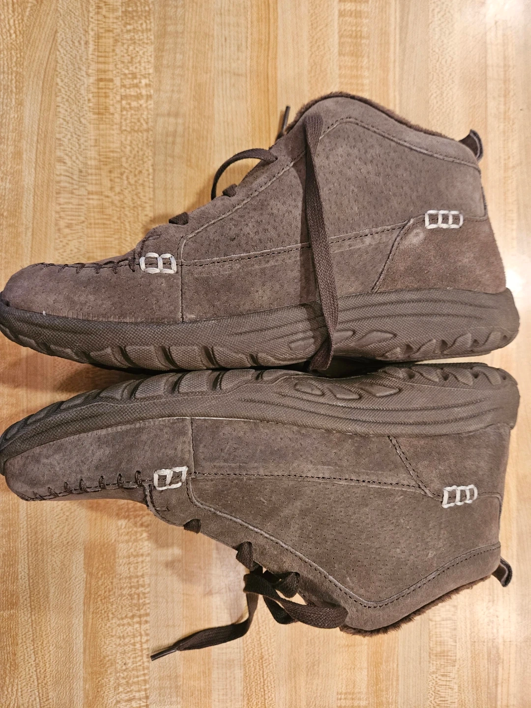 Selling a pair of Skechers Relaxed Fit women's boots in brown! Size 7.5. They feature a cozy, faux-fur lining and a lace-up design. They were barely used and are practically new.